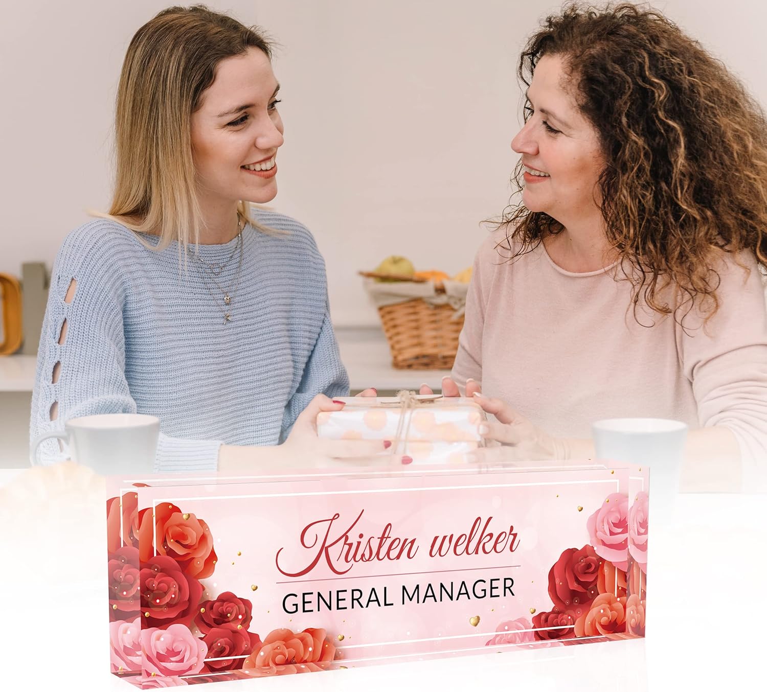 - šCustom A Great Office Decor Gift: Whether for holiday, birthday or work anniversaries, DIY a unique name plate for them, this premium acrylic glass block name plate will impress! Let your coworkers know you appreciate them.