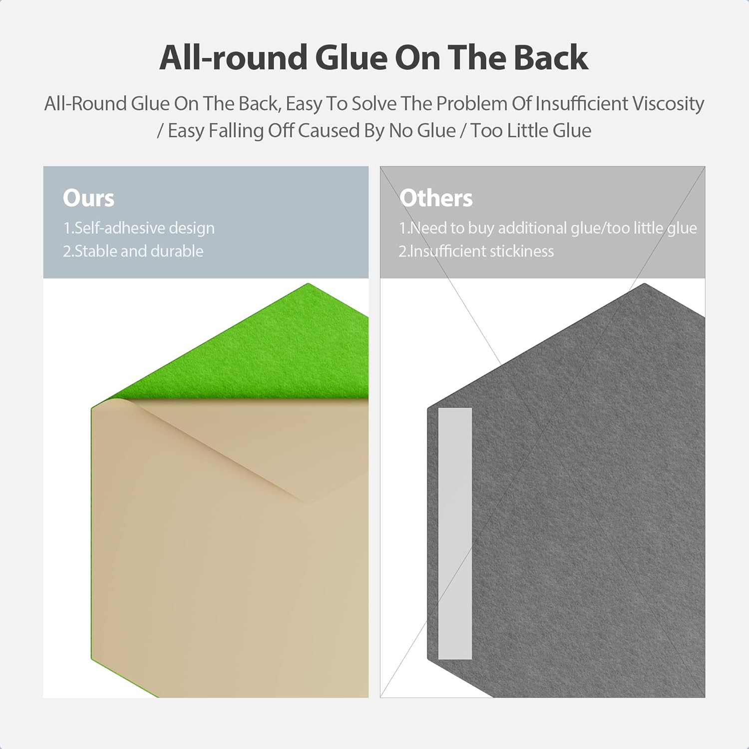 - 【FASHIONABLE HEXAGONAL DESIGN】Our sound-absorbing panel adopts a hexagonal honeycomb design. The hexagonal shape can achieve a wide range of sound-absorbing and noise-reducing effects. At the same time, you can use the sound-absorbing panel for fashionable Design, sound-absorbing panels in various colors, let you match the design