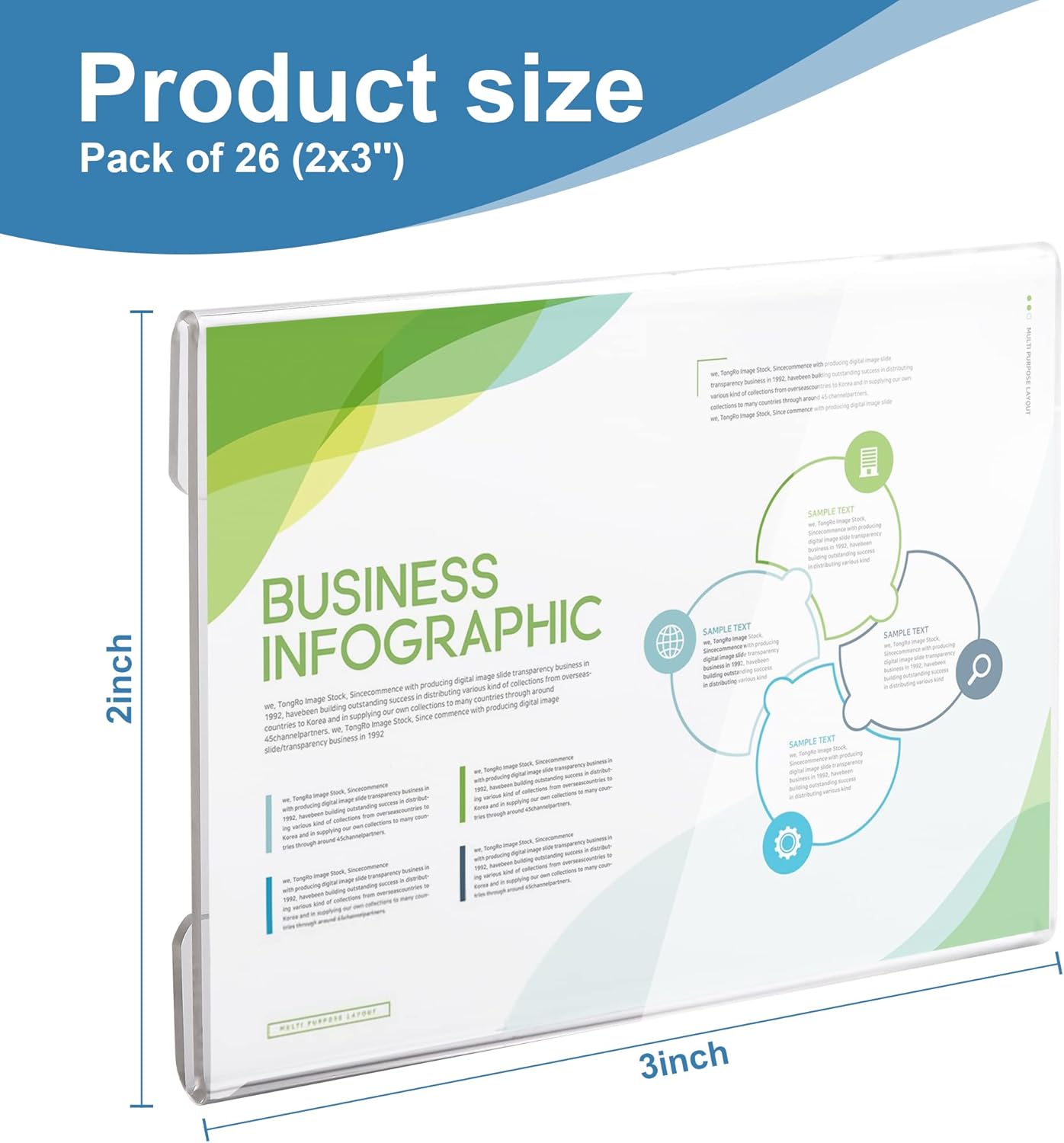 Lesnlok 26 Pack Wall Mount Acrylic Sign Holder 2x3 inch,With 3M Tape Adhesive for Office, Home, Store, Restaurant, No Drilling