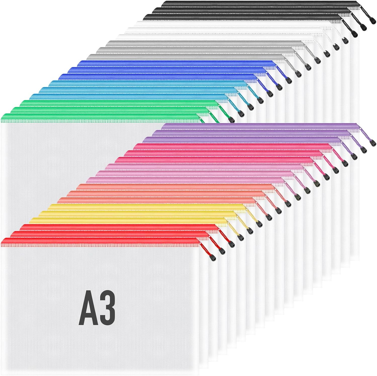 - Translucent Design and Various Colors: Package includes 36 large zipper bags in 12 different colors - black, red, pink, blue, rose red, orange, purple, green, white, sky blue, gray , yellow. The translucent plastic zipper pouches can prevent the privacy of important documents from leaking, but still can identify what the stuff in the bags