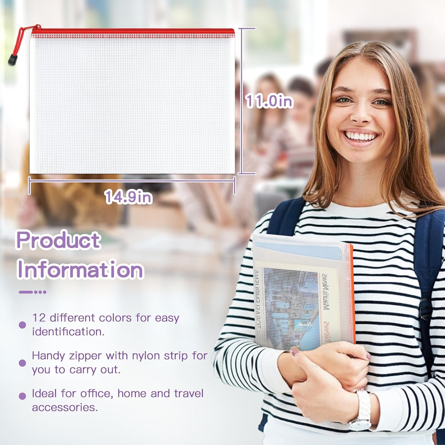 Umriox Mesh Zipper Pouch, 14.9x11.0 in (12 Colors, 36 Packs), Zipper Bags, Board Game Storage Bags, Clear Zipper Pouches for Puzzles, Games, Cross Stitch Projects and Classroom Supplies