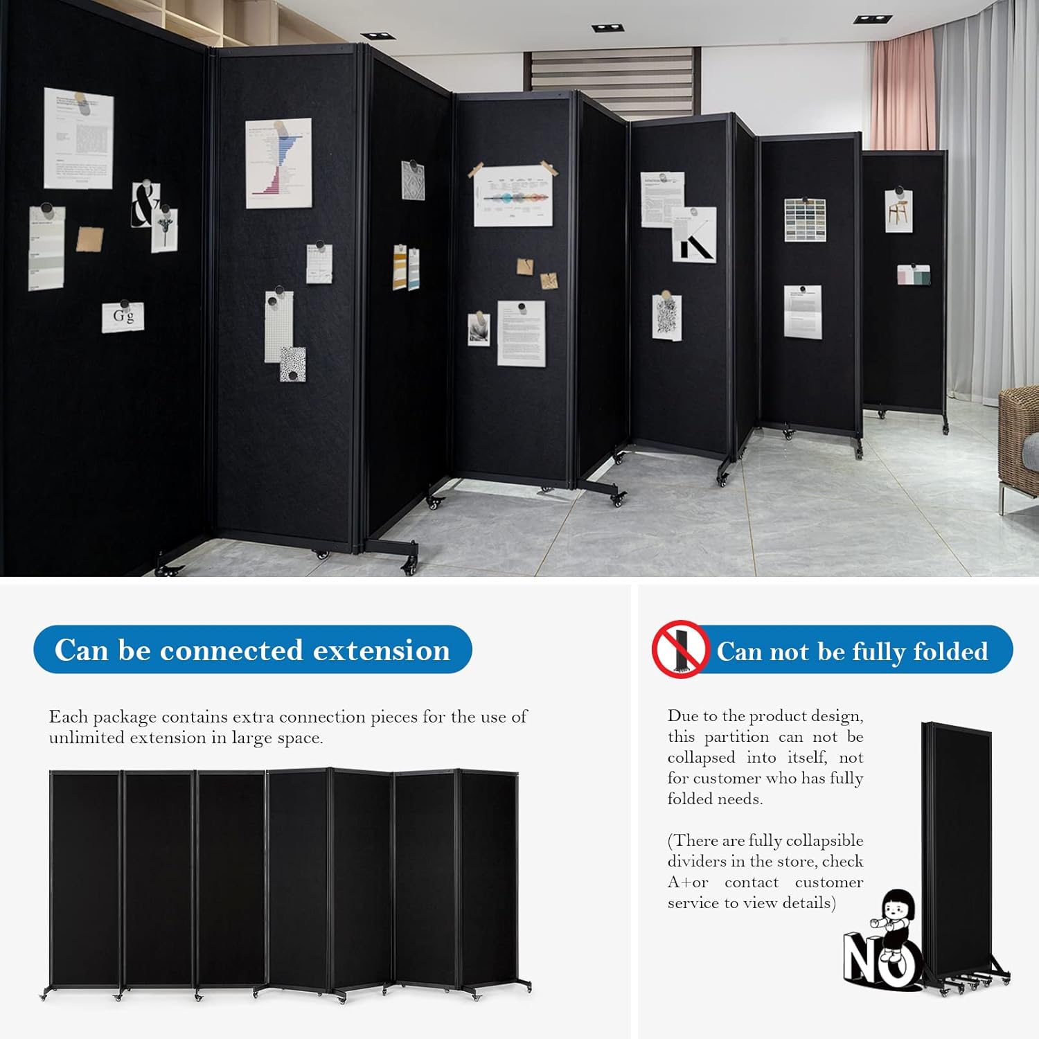 - Flexible operation: This partition wall is easy and smooth to operate, and the partition board can be folded at any angle (≤180°) to complete space partition and meet usage needs