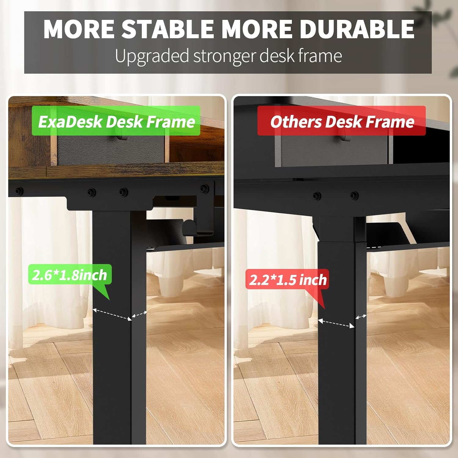 55 * 30 Inches Electric Standing Widened Desk Adjustable Height with 4 Drawers, Double Storage Shelves Stand Up Desk, Home Office Workstation Sit Stand up Desk (Rustic Brown)
