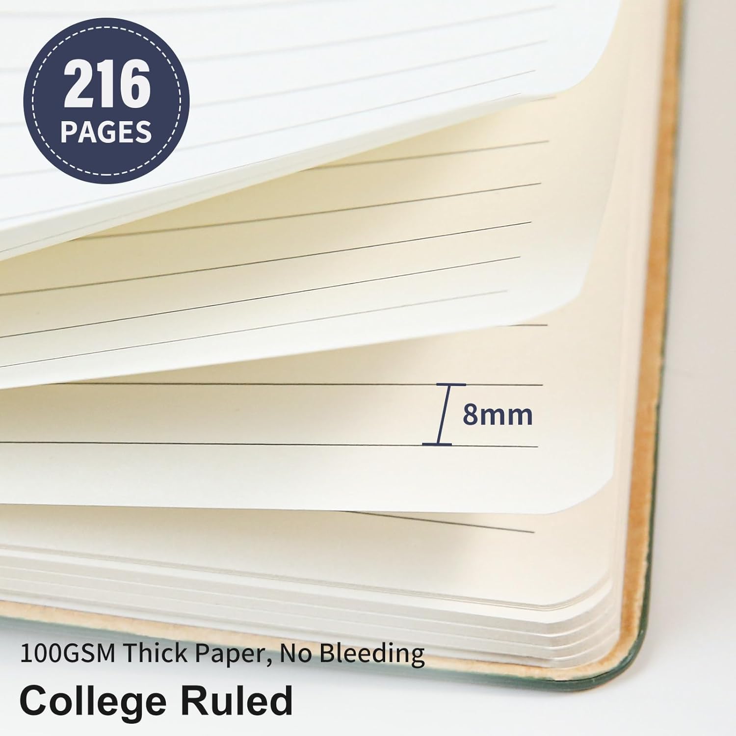 - 【216 Pages Of High Quality Paper】 Use 216 pages (108 sheets) of high quality 100Gsm acid-free paper thick lined paper with 8mm line spacing and light ivory color, our journal paper is thicker than normal notebooks, so you can use most pens, pencils and markers with confidence without ghosting and bleeding.