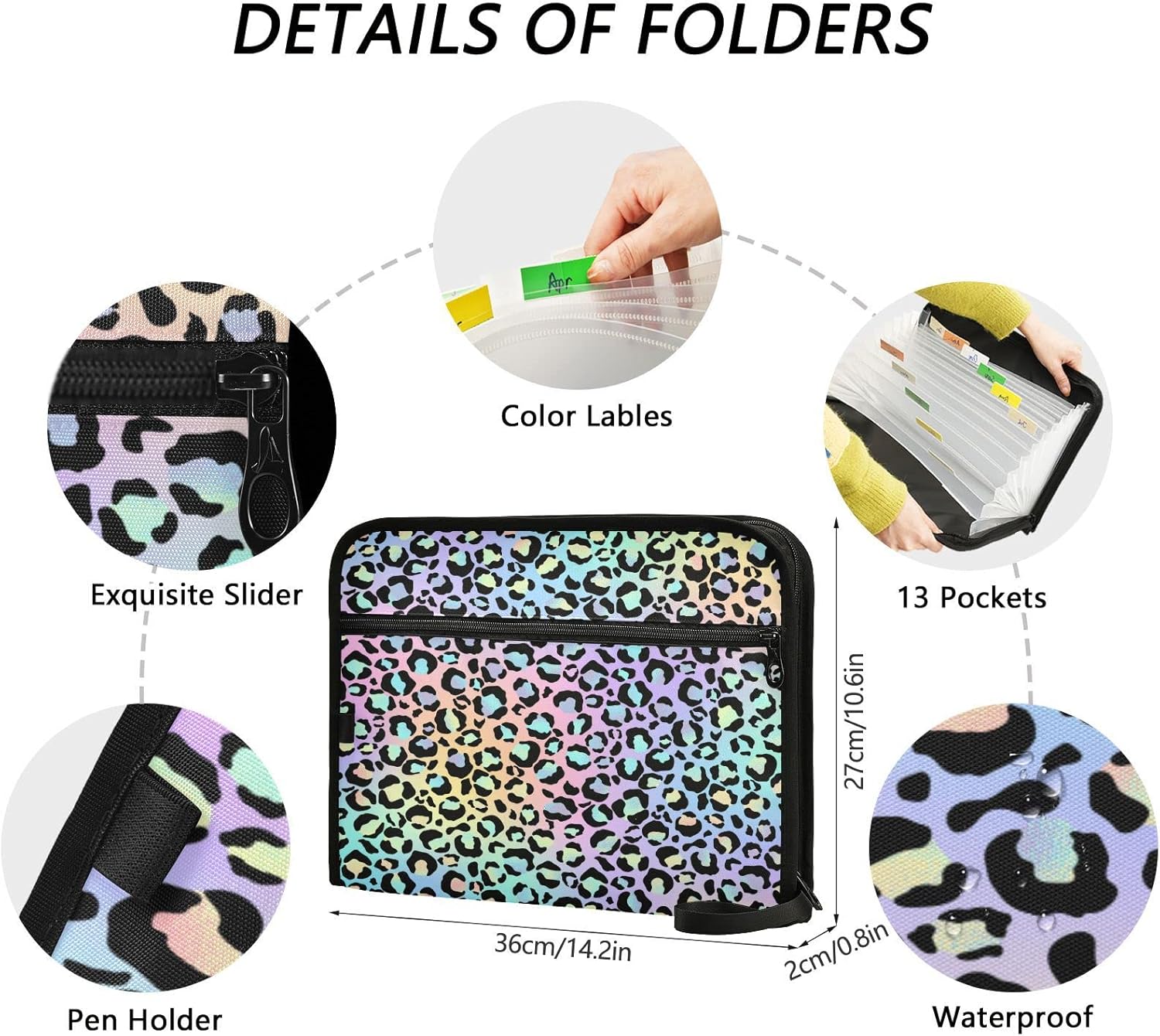 Gredecor Leopard Spots Neon Gradient Expanding File Folder 13 Pockets Expandable Filing Folders Accordion Document Files Organizer for A4 Letter Size Paper