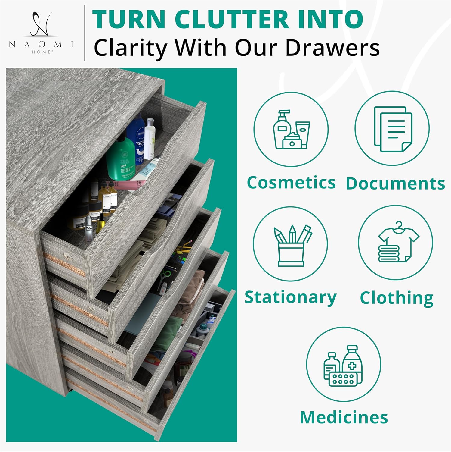 - OFFICE STORAGE FILE CABINET: Our office organization cabinet comes with 5 spacious office drawers with smooth runners. Naomi filing cabinet provides mess free storage and allows you to store files, stationeries, books, documents etc.