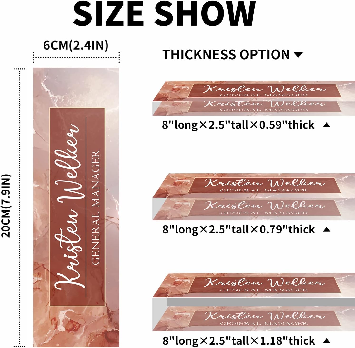 - šPremium Quality: The personalized name sign plates are made of high quality crystal clear acrylic blocks. This office nameplate will stand out on any desk! We use high-tech uv printers to print on quality clear acrylics glass so you can visualise your memories.