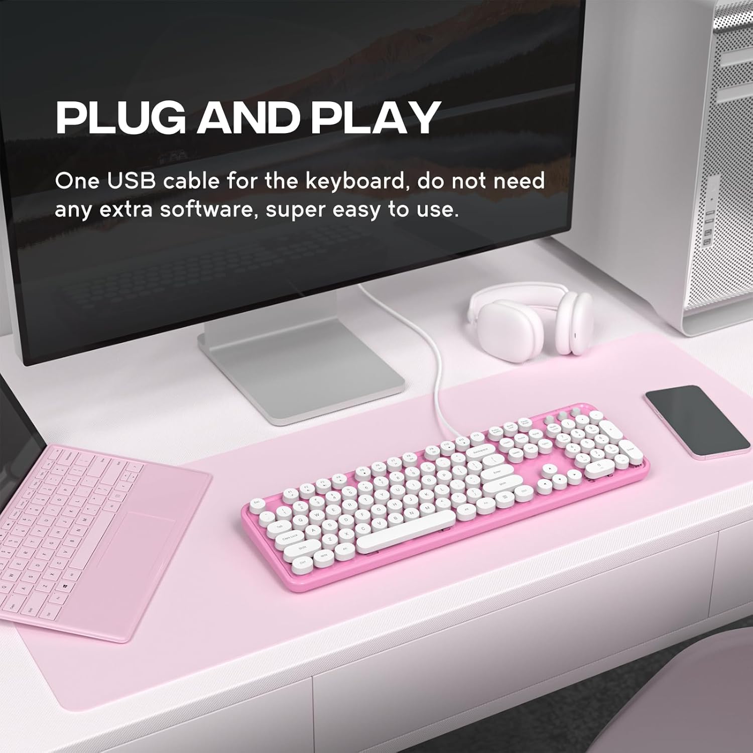 - ăRetro Typewriter KeyboardăCute round keycaps, crisp and sweet sound, perfect knocking feel, let you find the feeling of a retro typewriter. And itâs detachable, making the keyboard easy to clean.