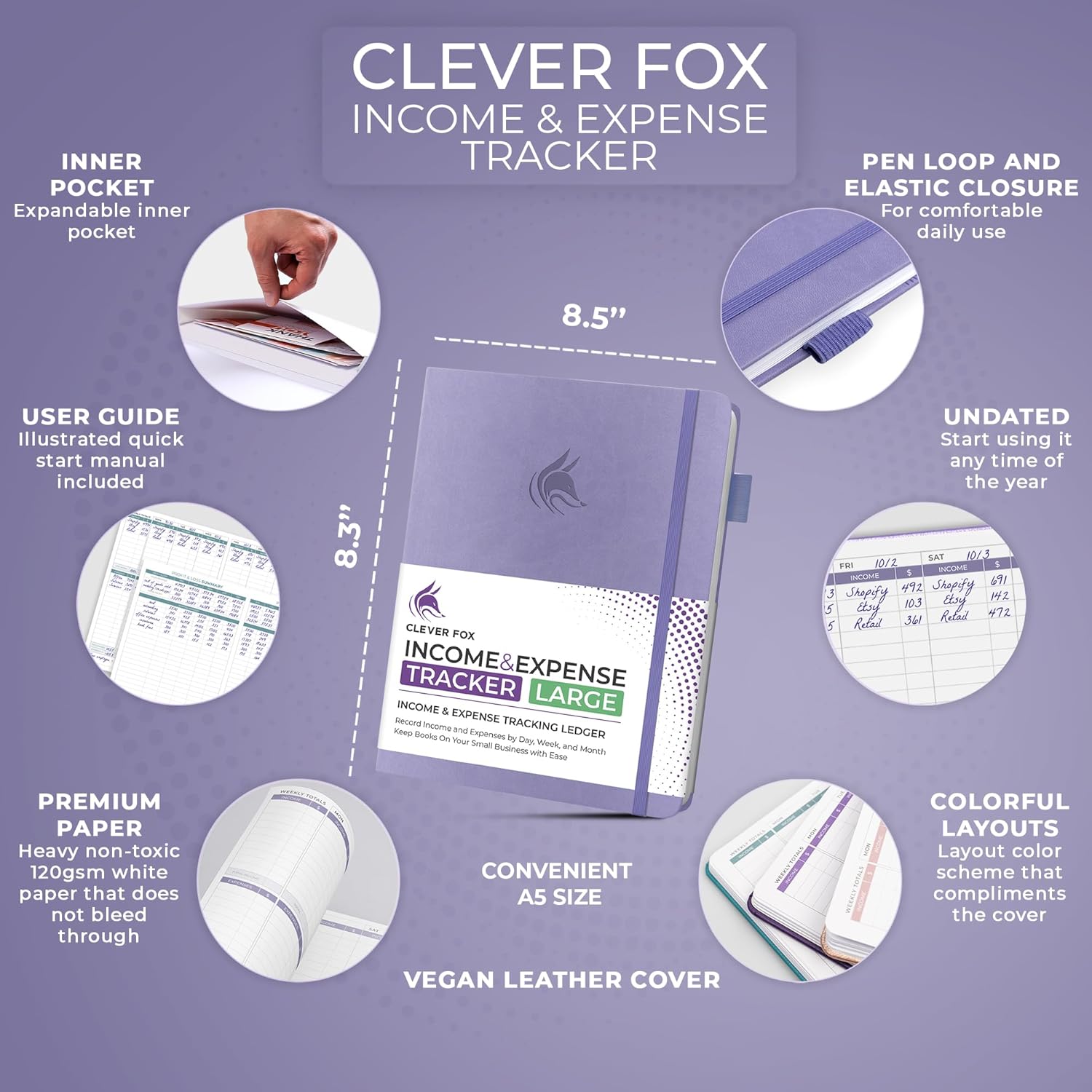 Clever Fox Income & Expense Tracker Large – Accounting & Bookkeeping Ledger Book for Small Business – 2-Year Record Notebook, A4 (Lavender)