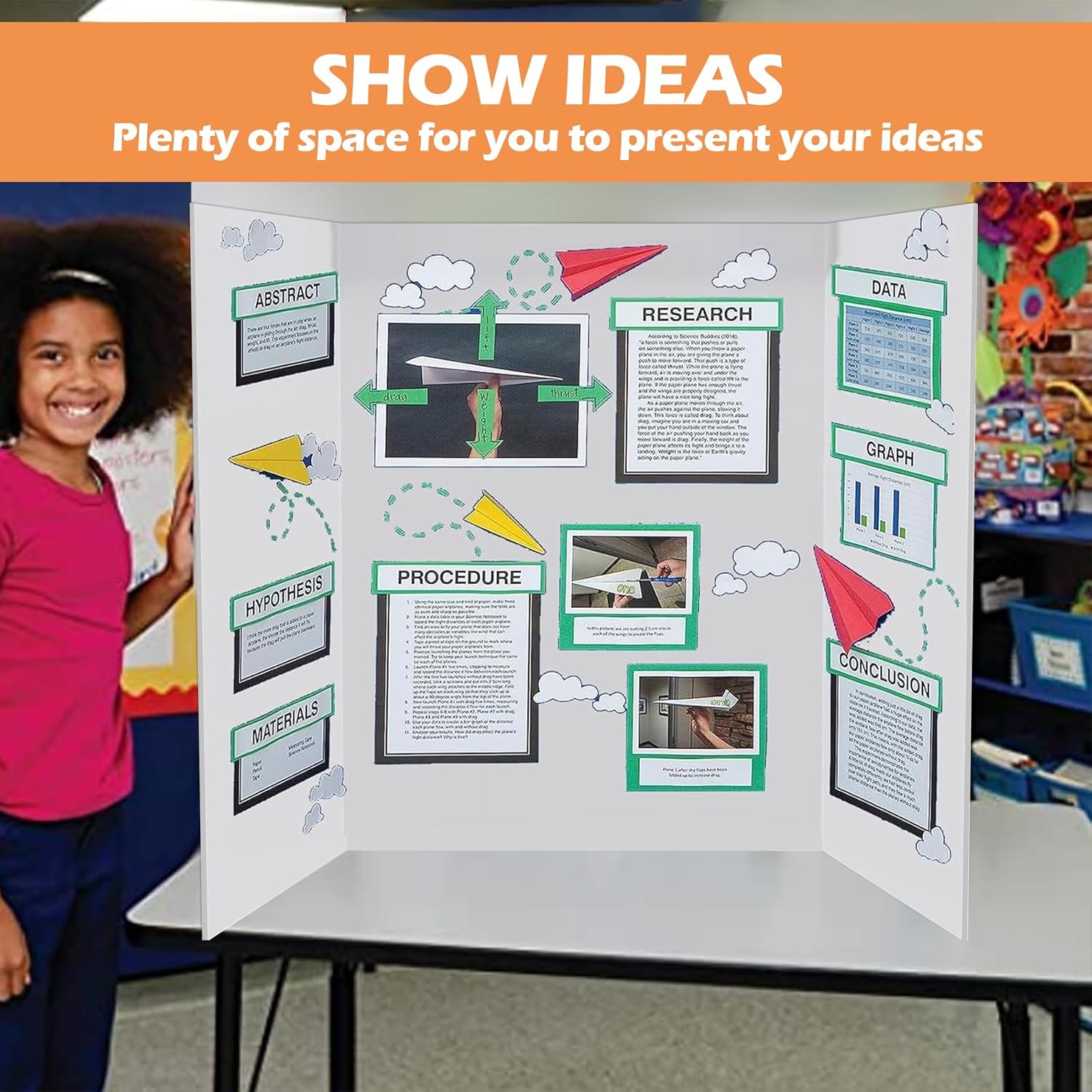 - What's Included: You'll get 4 trifold poster boards with corresponding card headers, 4 sheets self adhesive poster board titles, and 32 sheets black edge science project stickers to make your display more clear, a very practical product with enough quantity to meet your daily needs