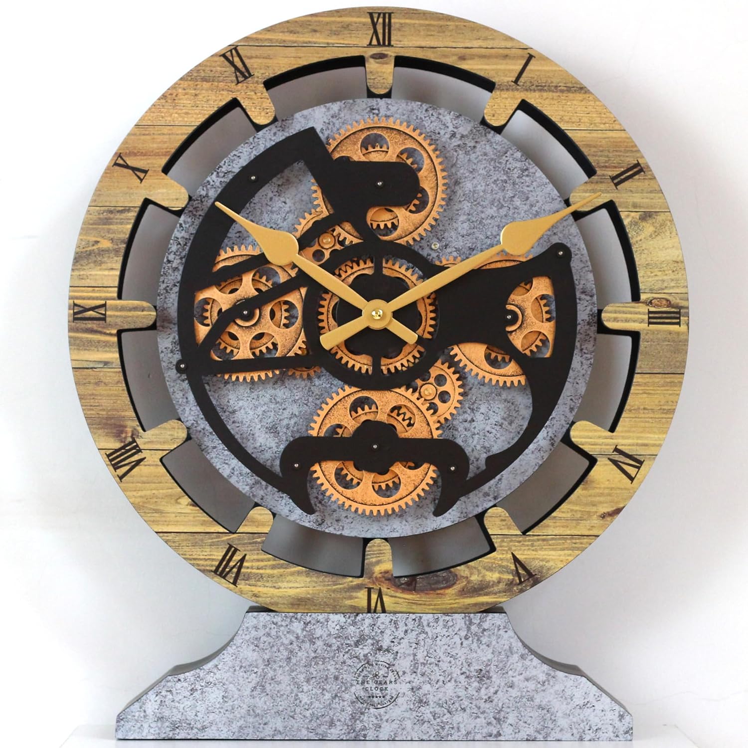 The Gears Clock 16 inches Wall Clock with Real Moving Gears Convertible into a Big Mantel Clock (Wood & Stone)