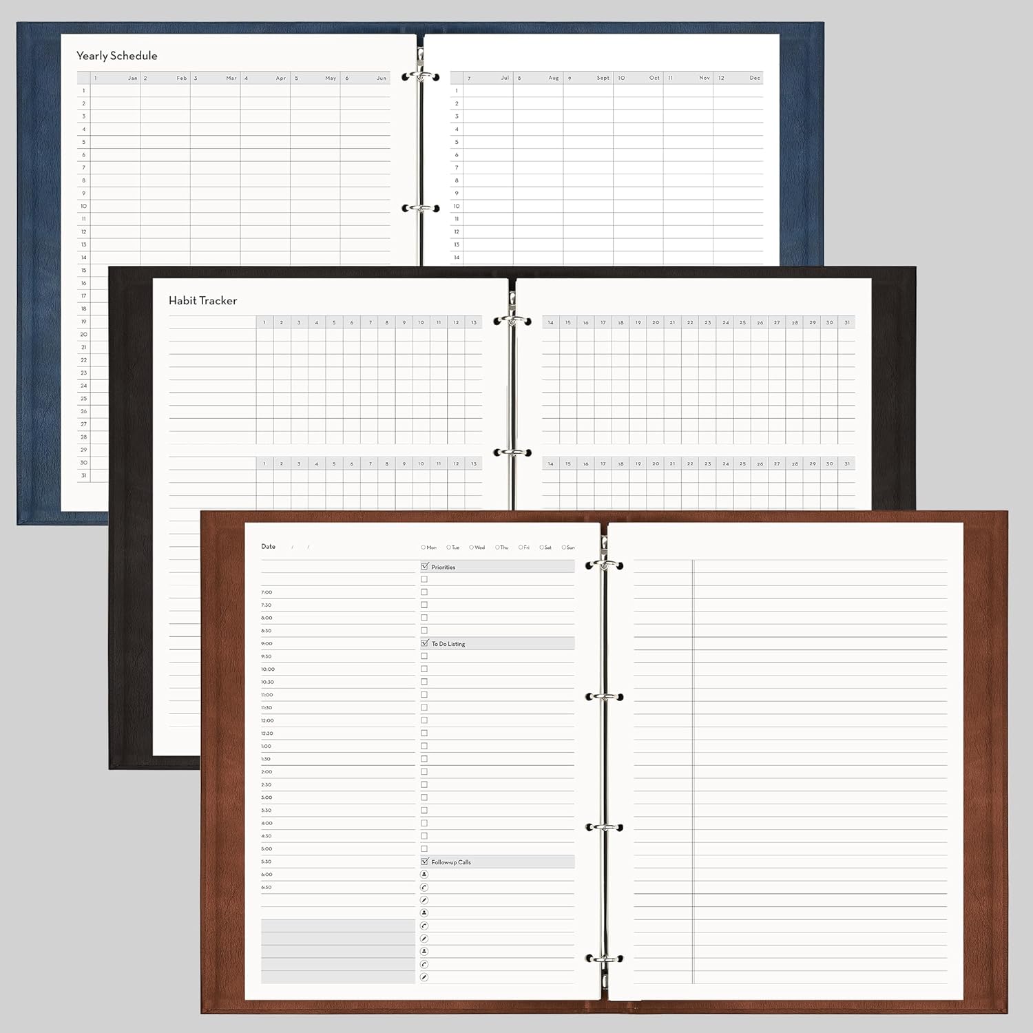 EMSHOI Undated Daily Planner - A4 Large To Do List Notebook Appointment Book for Productivity Time Management, with Hourly Planner Refills, Hardcover Binder Leather Journal - 240 Pages, 9.2x12