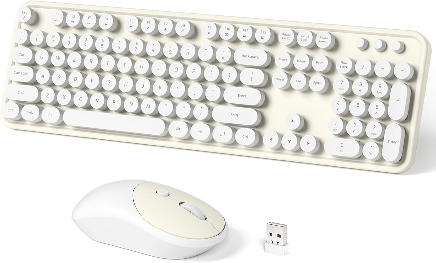 Wireless Keyboard and Mouse Combo, 104 Keys Full-Sized Typewriter Keyboards, 2.4 GHz USB Receiver Plug and Play, for Windows, PC, Laptop, Desktop (Cremy White)