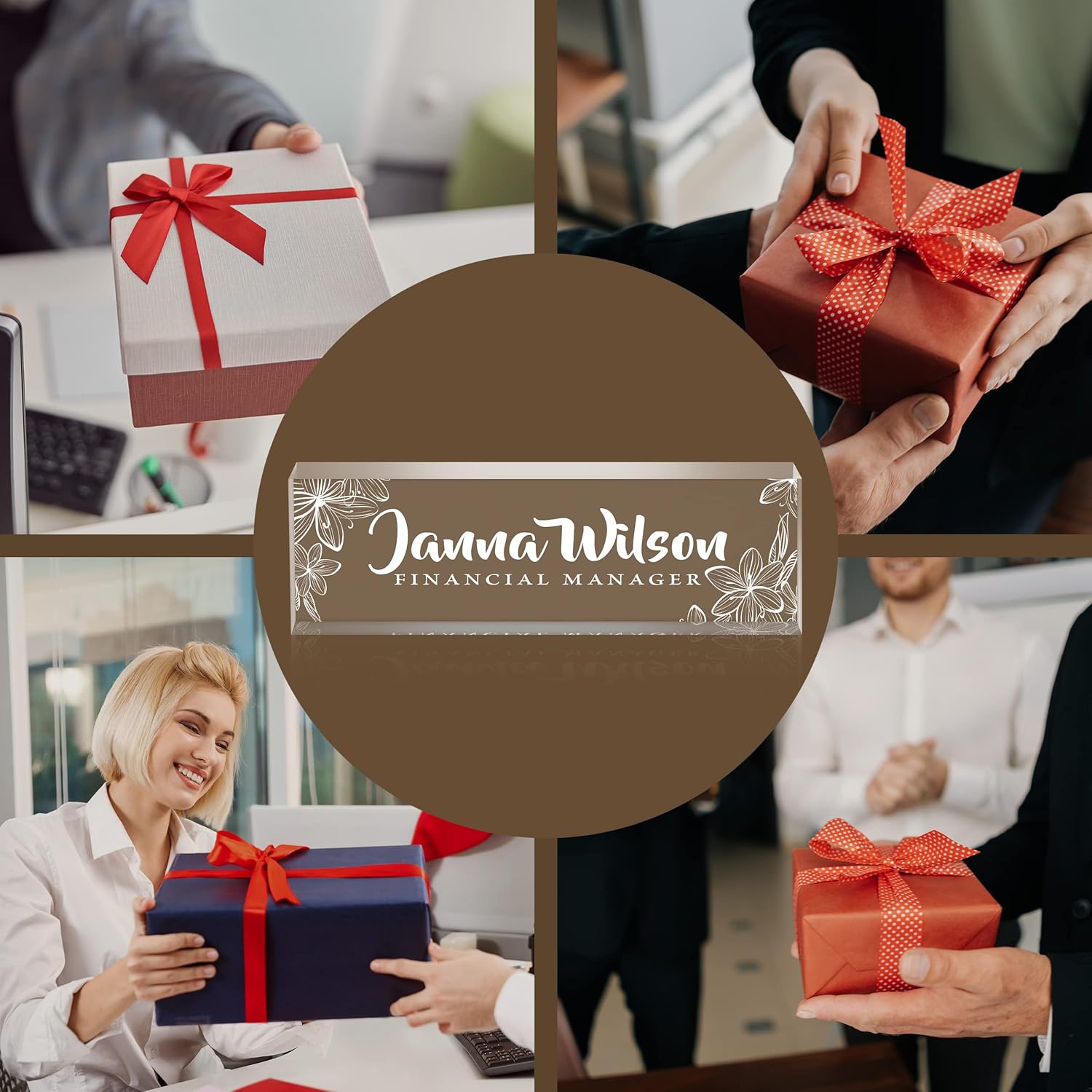 - šCustom A Great Office Decor Gift: Whether for holiday, birthday or work anniversaries, DIY a unique name plate for them, this premium acrylic glass block name plate will impress! Let your coworkers know you appreciate them.