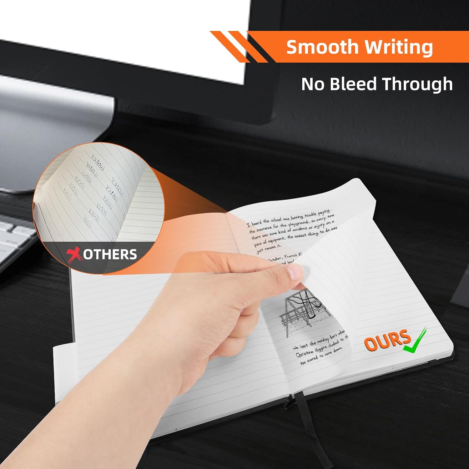 - NO BLEED THROUGH & GHOSTING - Bossand notebook is made with 200 pages high-quality, 100 gsm acid-free paper, the premium thick paper ensures a smooth touch and prevents ink from bleeding through the pages, ghosting, or discoloration. Whether you prefer fountain pens, gel pens, or ballpoint pens, this journal is suitable for most writing instruments.