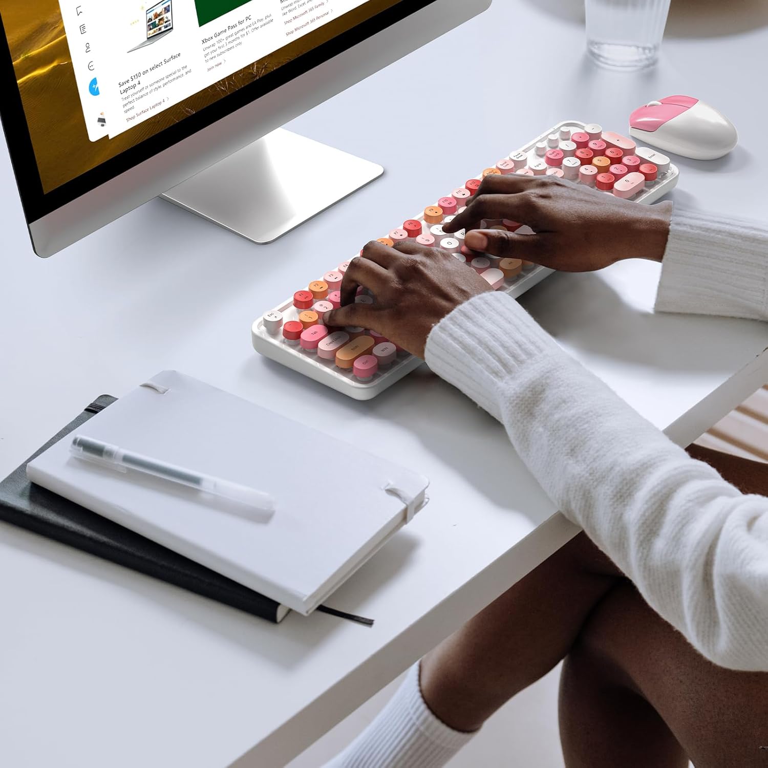 MOFII Wireless Keyboard and Mouse Combo,2.4GHz Retro Full-Size Wireless Keyboard with Number Pad and Cute Wireless Mouse for Computer PC Desktops Laptop WindowsxP/7/8/10 (Lipstick Colorful)