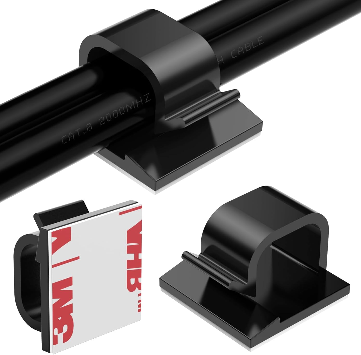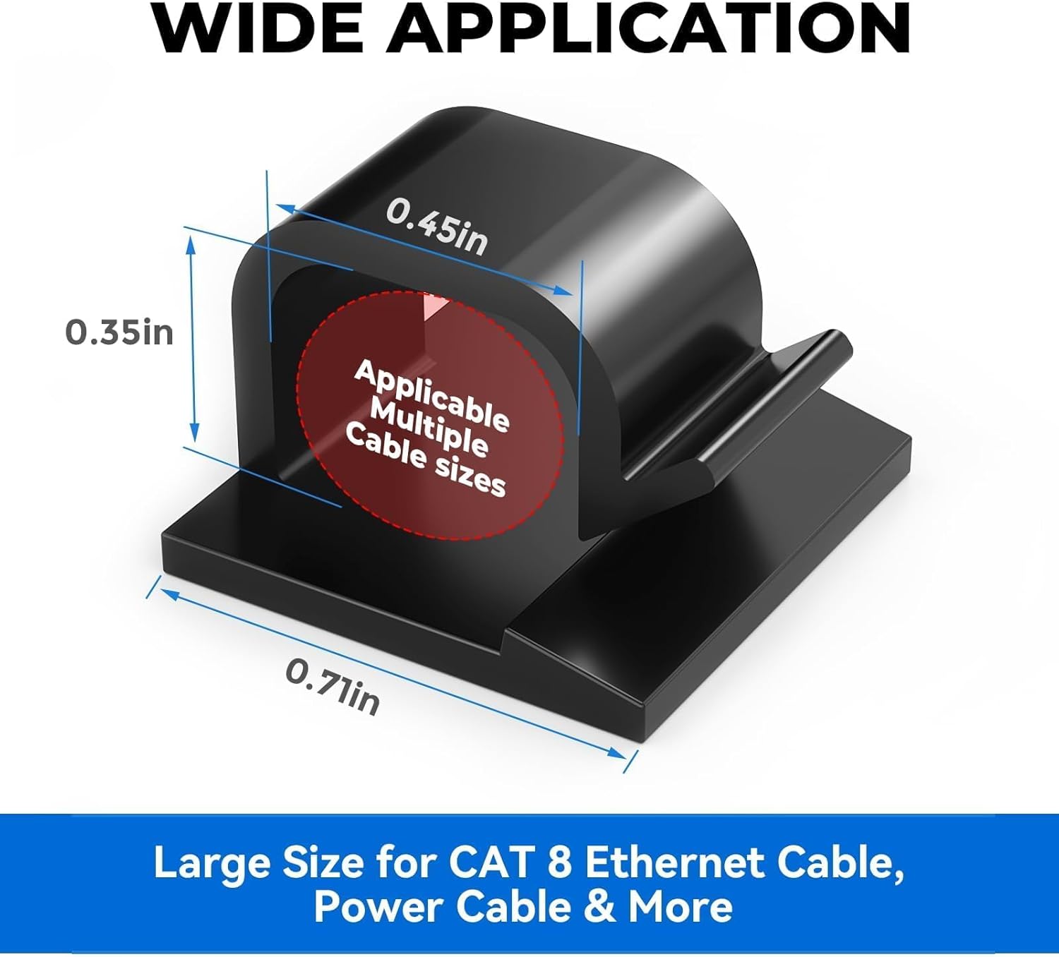 Large Cable Clips 40pcs with Strong Adhesive Tapes,Wire Holder Organizer Cord Management for Car, Office and Home (Black- L05(40PCS))