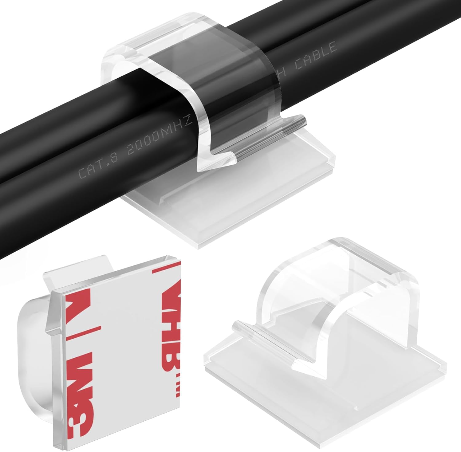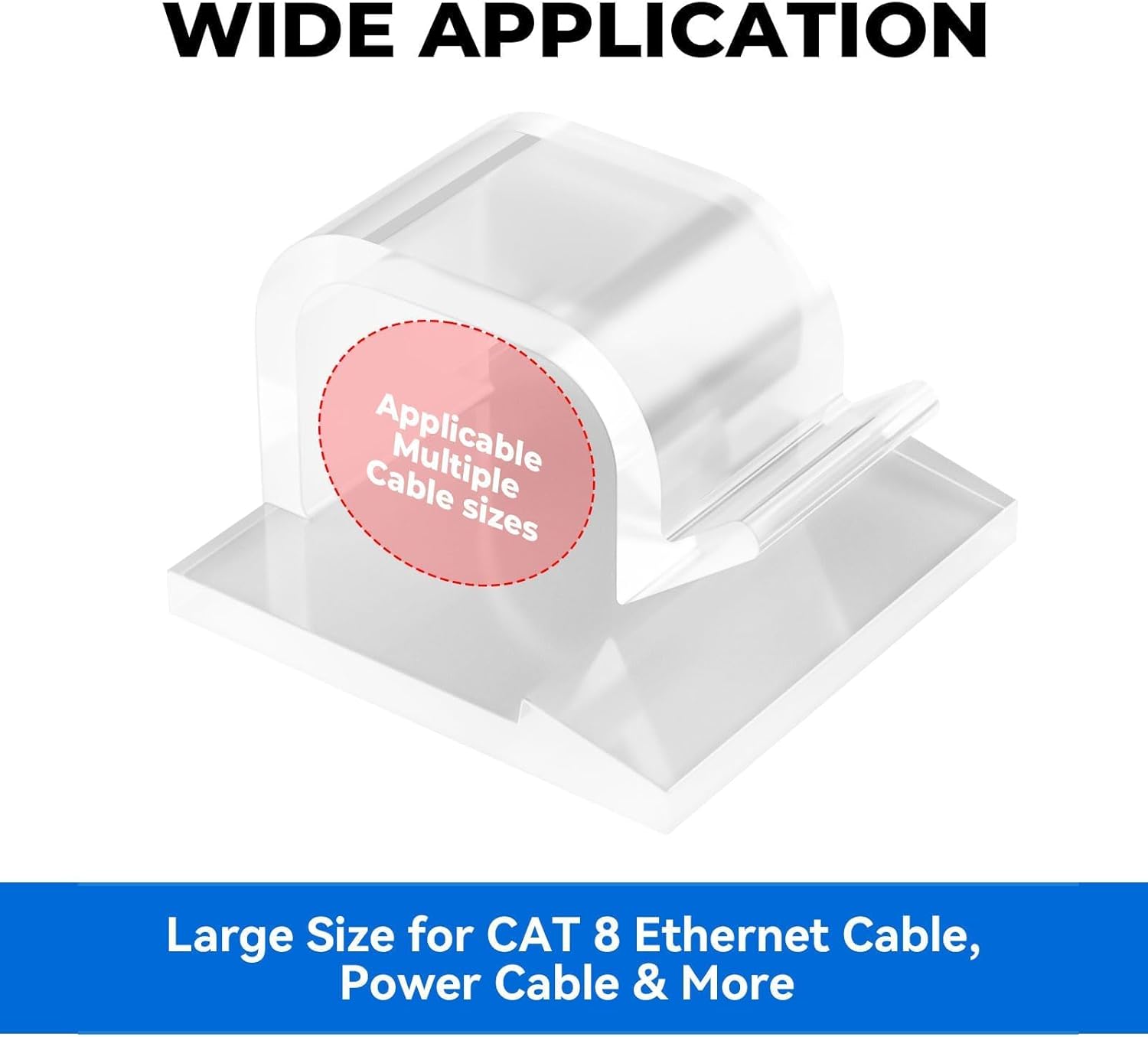Large Cable Clips 40pcs with Strong Adhesive Tapes,Wire Holder Organizer Cord Management for Car, Office and Home (Clear- L06(40PCS))