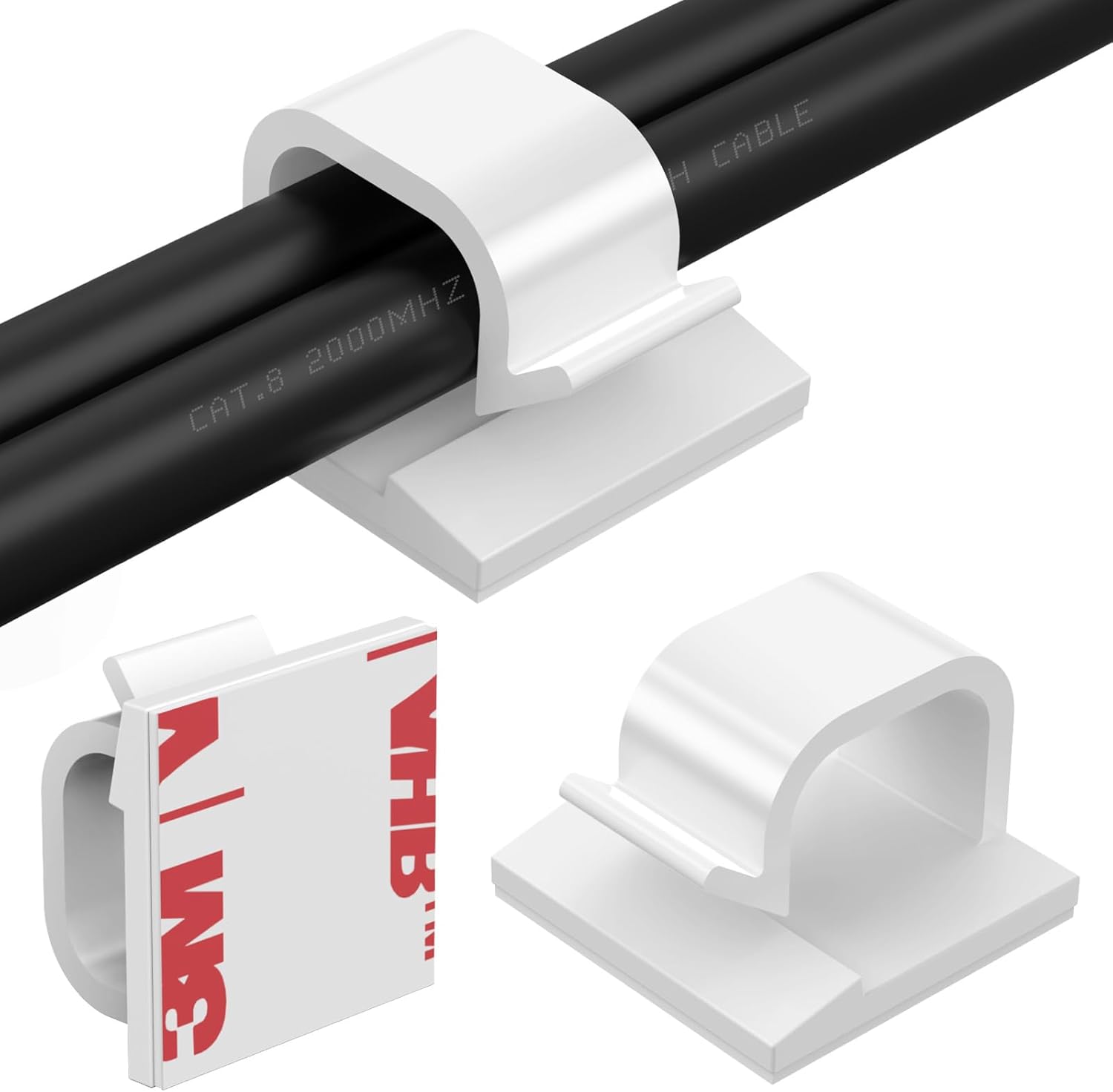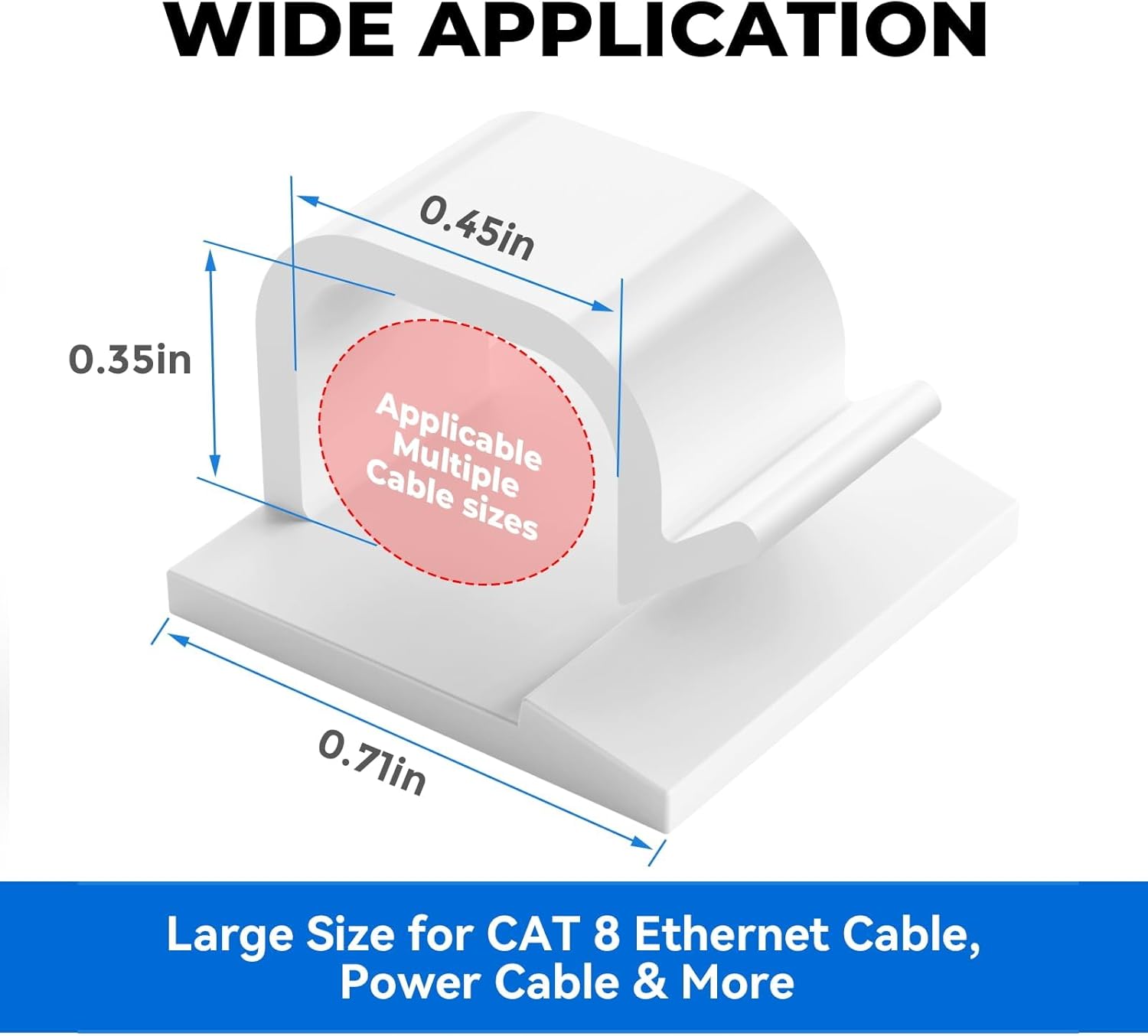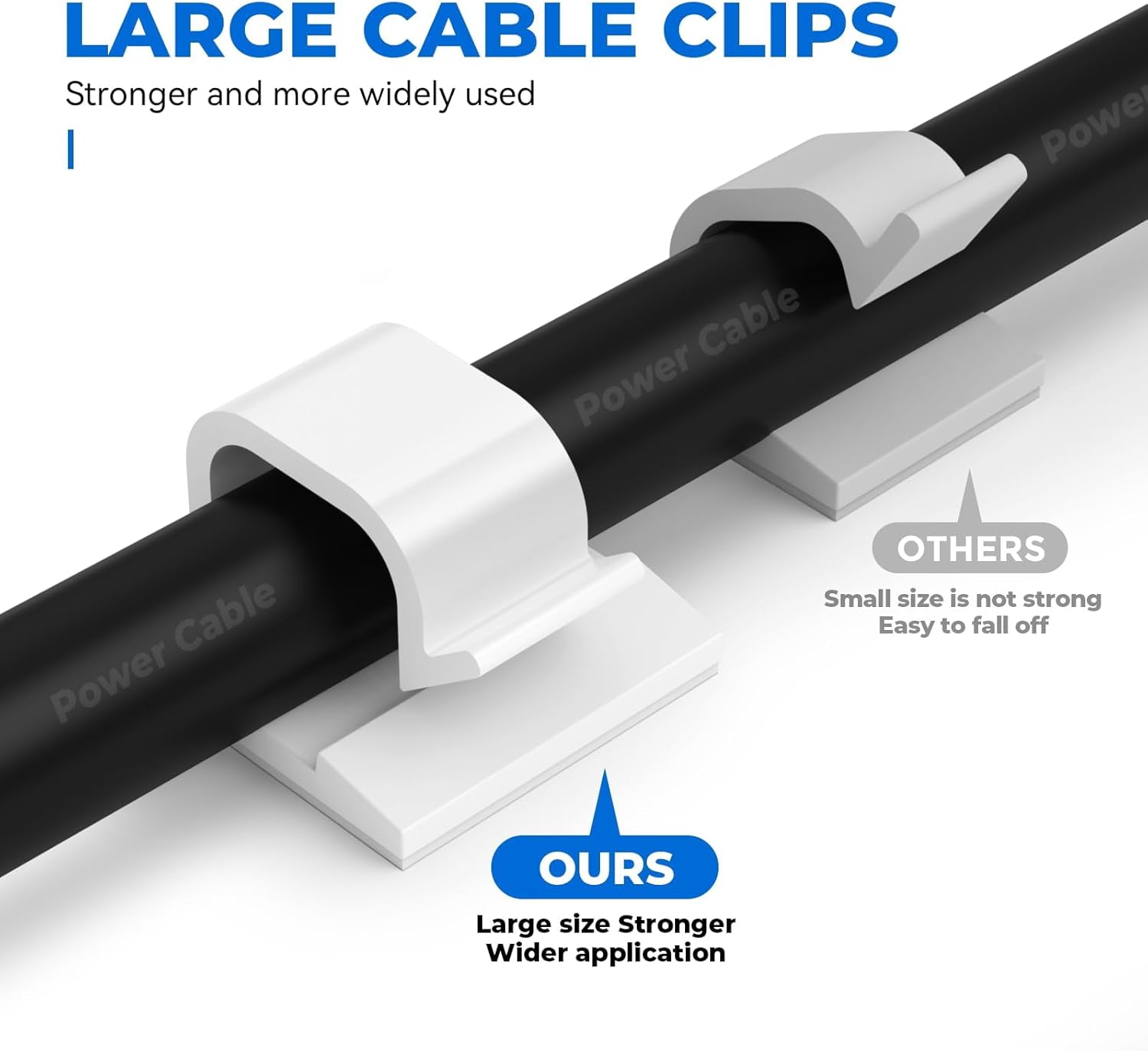 Large Cable Clips 40pcs with Strong Adhesive Tapes,Wire Holder Organizer Cord Management for Car, Office and Home (White- L04(40PCS))