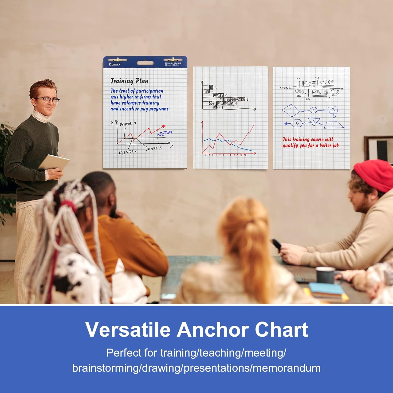 - 【Tips】Comix anchor chart paper is suitable for sticking on the indoor flat substrates ,such as latex walls, wooden door, glass, blackboards, whiteboards, metal, etc. lt is not recommended to stick on the conspicuously concave-convex substrates, specially diatomaceous mud wall or spray painted walls.