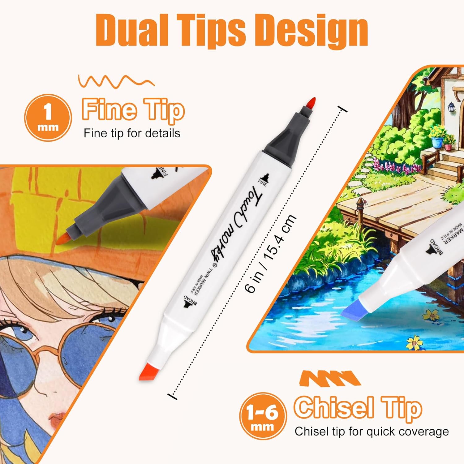 - PERFECT COLOR MATCHING WITH APP: Our professional alcohol coloring markers comes with free App that allows you to quickly find the right marker and achieve the perfect color for your painting. Our dual tip alcohol marker for artist solves the problem of color difference and inability to quickly identify markers in other products, making it very suitable for beginners and advanced users