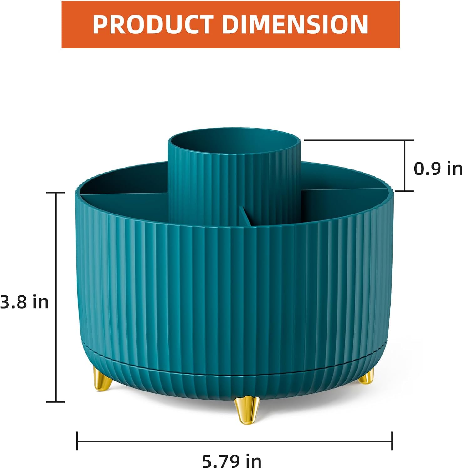 - 【Multipurpose Desktop Organizer】: This rotating storage organizer is perfect for pencils, cosmetics, bathroom necessities, toiletries, and even kitchen utensils. Try it in your craft room, playroom, laundry/utility room, and even inside bathroom cabinets or under the sink; Store extra office supplies like painting pens, correction tape, scissors, TV Remote, and more; Even headphones or a charger will no longer be lying around in the future! Maximize your vertical space and keep your desk clear