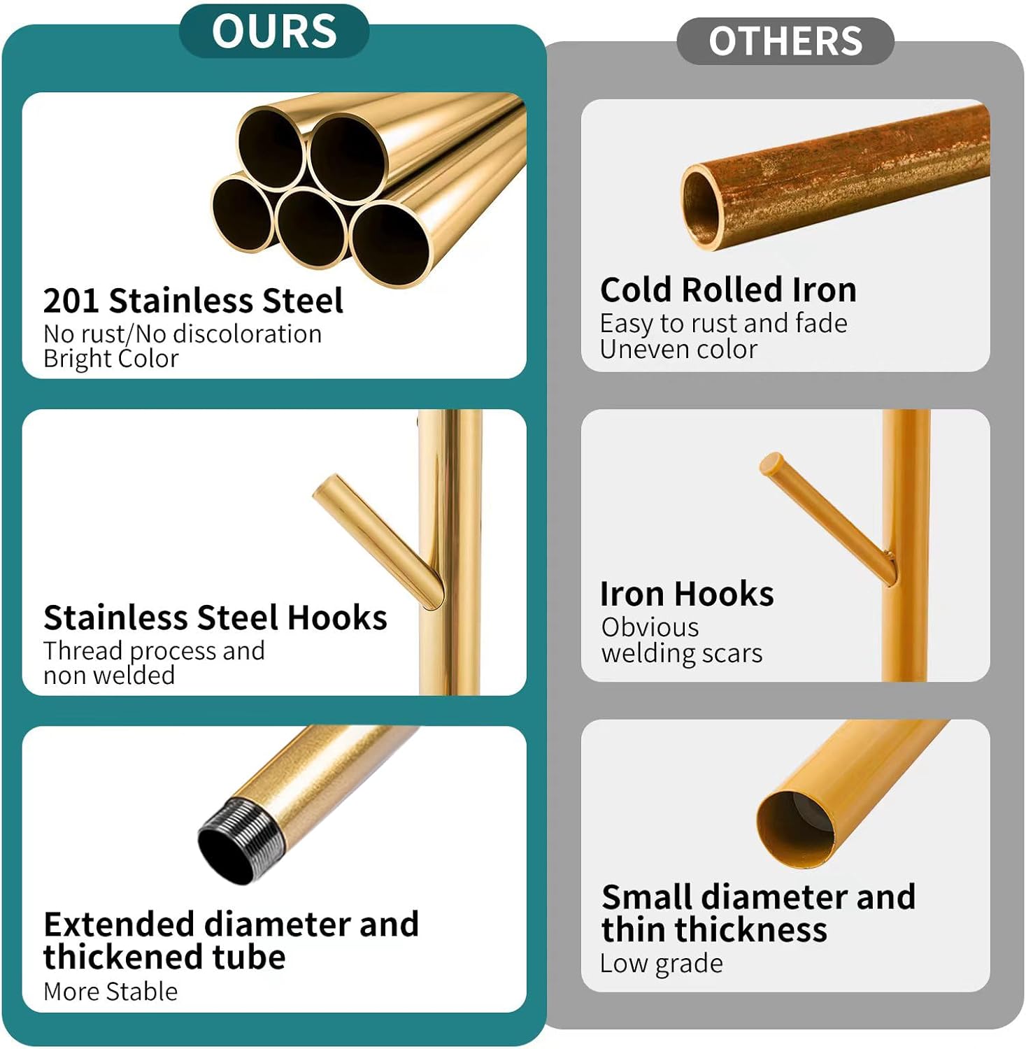 - STURDY STAINLESS STEEL FRAME: The coat rack freestanding is made of stainless steel. The thickened stainless steel coat rack stand’s main pole is more load-bearing and can be stored in multiple layers to meet all seasonal needs