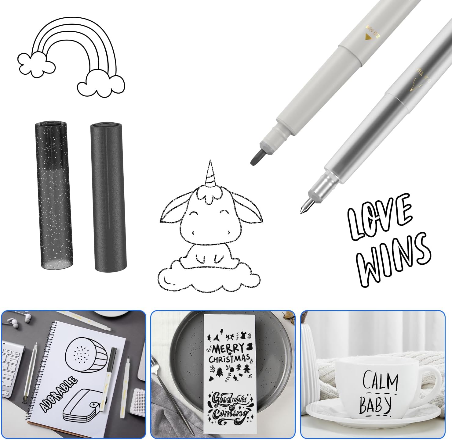 DOOHALO Metallic Grey Black Pens Compatible with Cricut Maker 3/4 Explore2/ 3/Air1.0/0.8/2.0/2.5 Variety Point Tips Gel Glitter Markers for drawing Writing