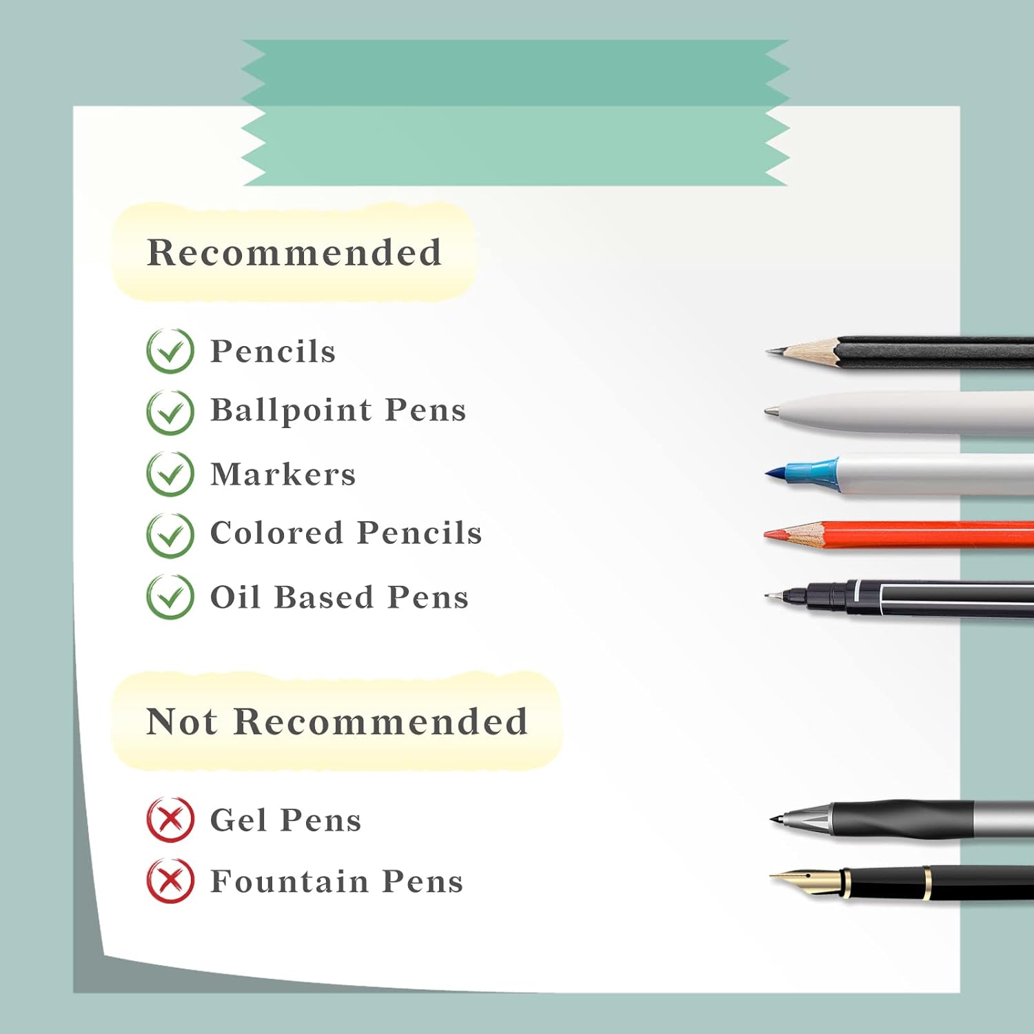 - Please Note: Since the transparent sticky notes are made of waterproof material, we recommend that you use oil-based pens (ballpoint pens, markers, etc.) or pencils instead of water-based pens to write or draw for a better experience.
