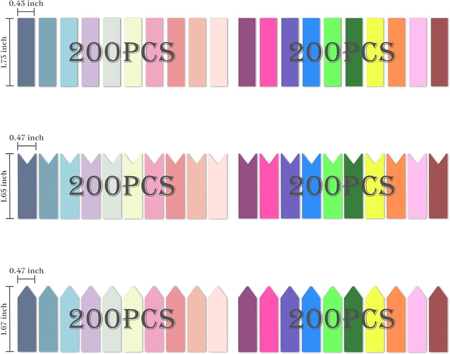 - What Will You Get: 1200 Sheets transparent sticky tabs(1.8x0.4 inch ) morandi pastel and bright different colors, sufficient in quantity, enough to be used for a long time,Translucent sticky notes meet your various note-taking needs.