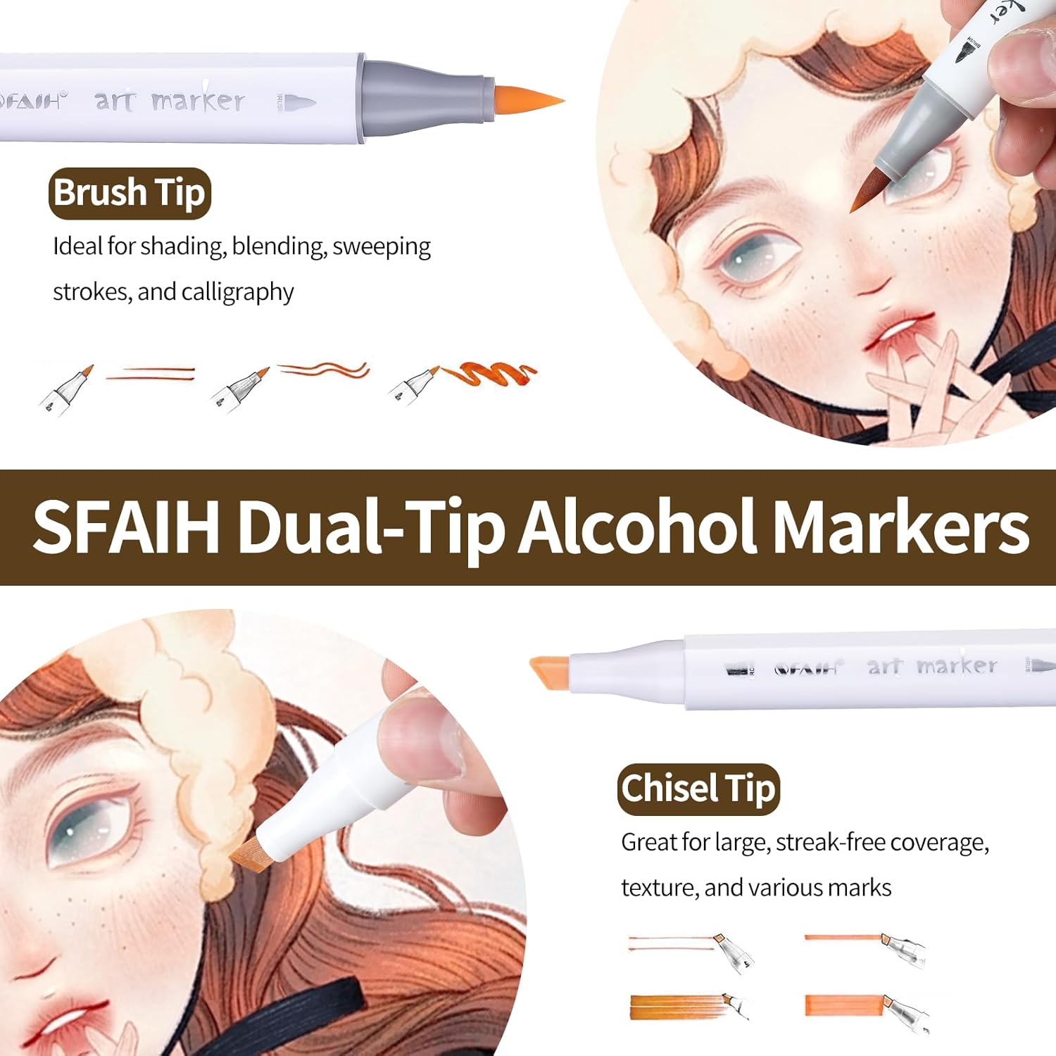 SFAIH Light Skin Tone Marker Pens 11 Colors + Mixed Color 0 - Dual Brush & Chisel Tips Art Marker Set for Portraits Coloring Drawing