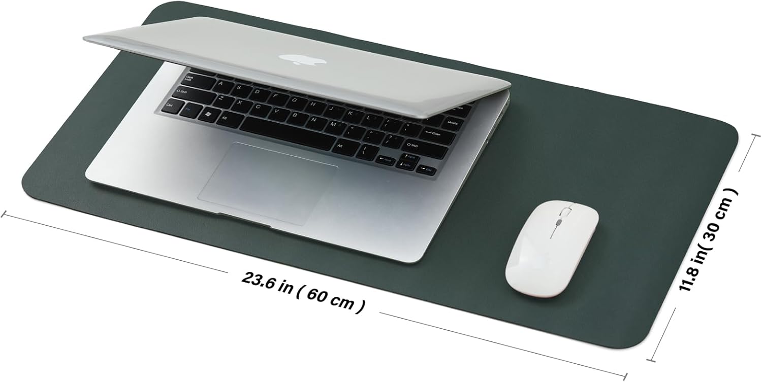 Compact Leather Desk Mat - Small Non-Slip PU Desk Pad for Office and Home - Desk Organization and Accessories - Ideal for Large Mouse Pad and Small Desk Mats on Top of Desks (Dark Green,23.6"x 11.8")