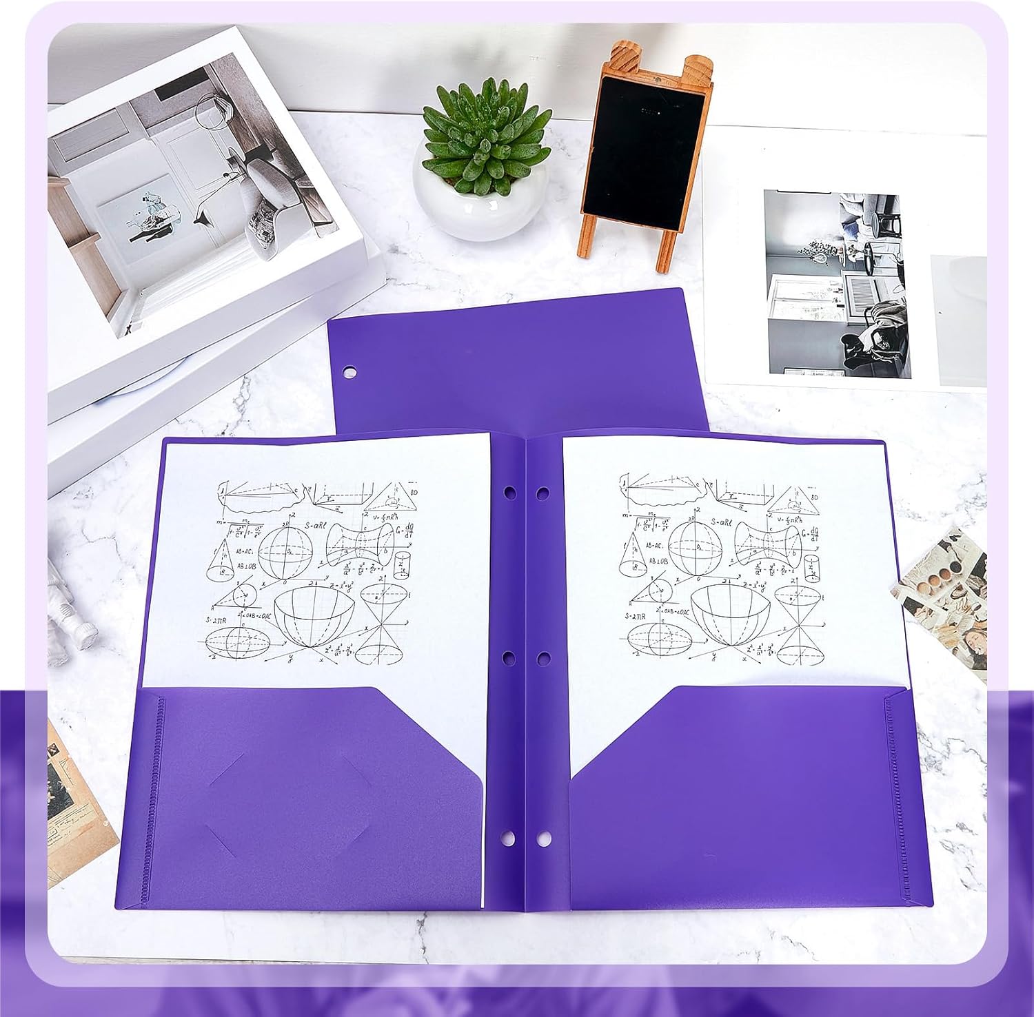 - Enough Quantity to Use and Replace: you will receive 50 pieces purple plastic pocket folders, each with 3 holes and 2 pockets, fitting 3 ring binders and 8.5 x 11 inch letter size paper; Each pocket easily and neatly stacks 50 pages of letter size paper
