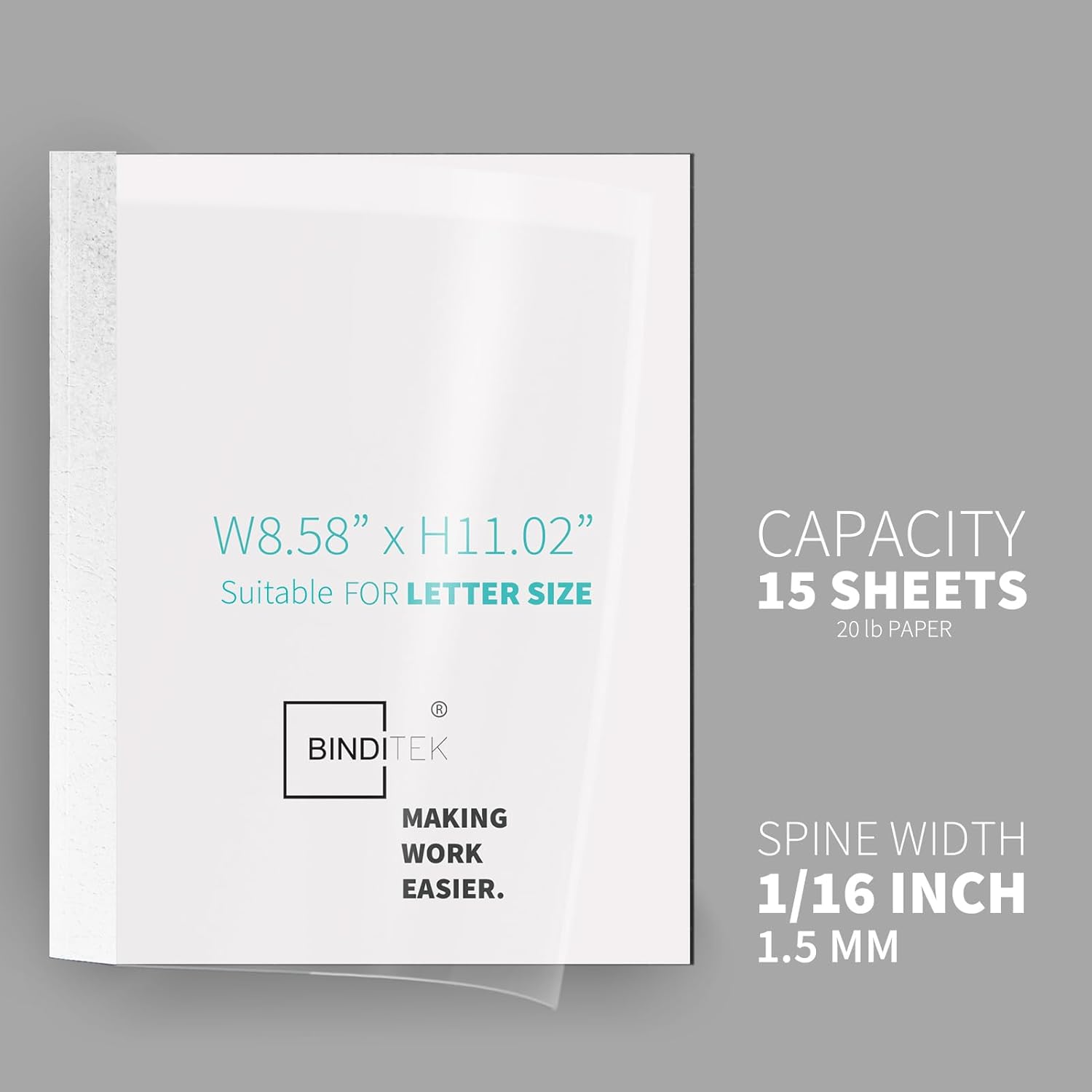 Binditek 10 Pack Thermal Binding Presentation Covers, 1/16 Inch Spine, Holds 15 Sheets, Ultra Clear Front Cover, White Paper Back Cover, Letter Size, for Students and Coworkers