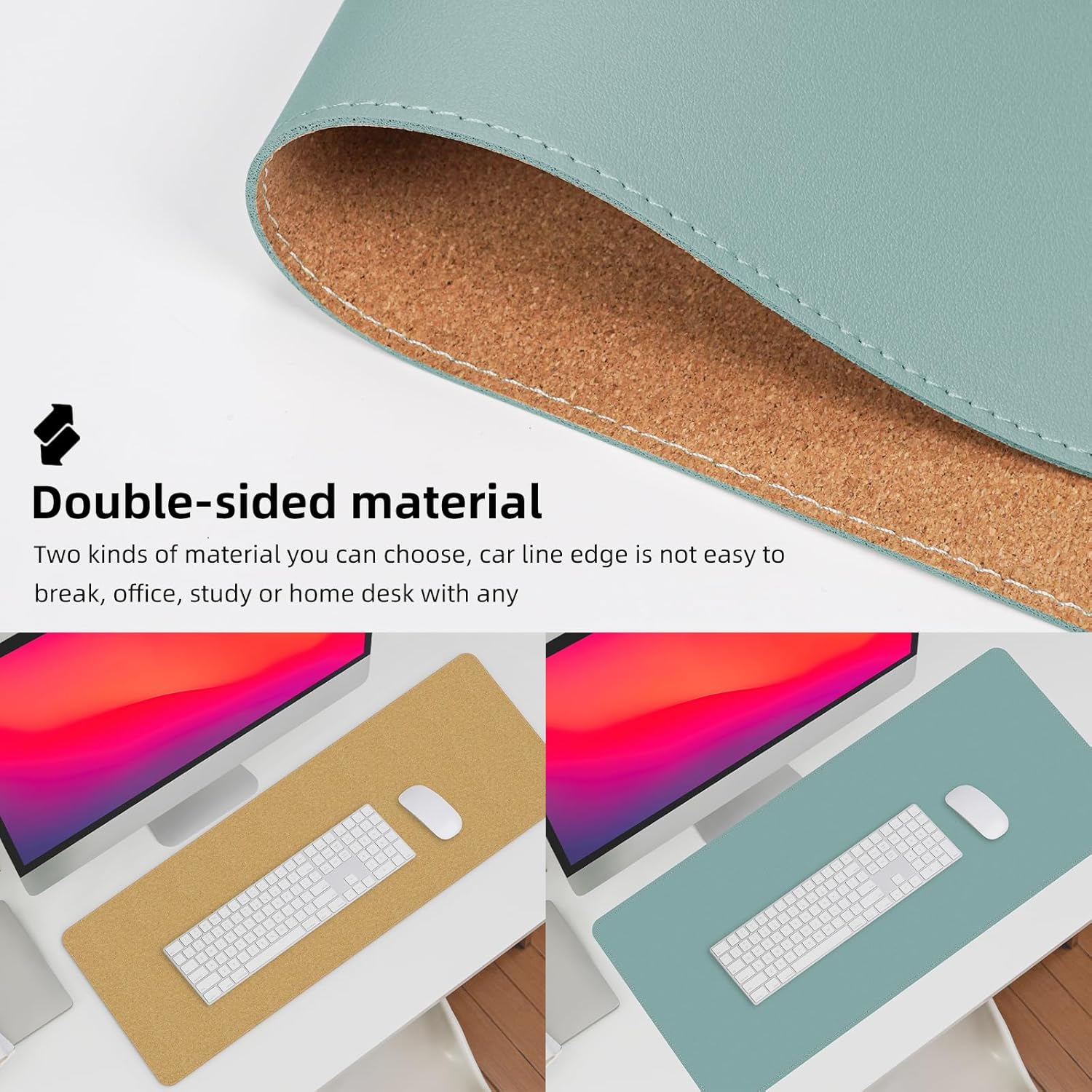 - Elevate Your Workspace: Our reversible desk pad is designed to complement any office or home desk with its premium materials and elegant black thread stitching. The natural cork base provides extra grip to keep your desk mat in place.