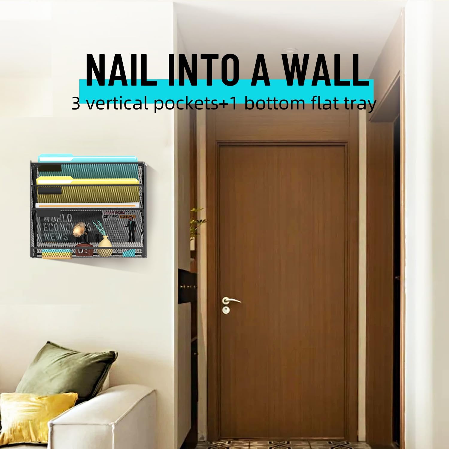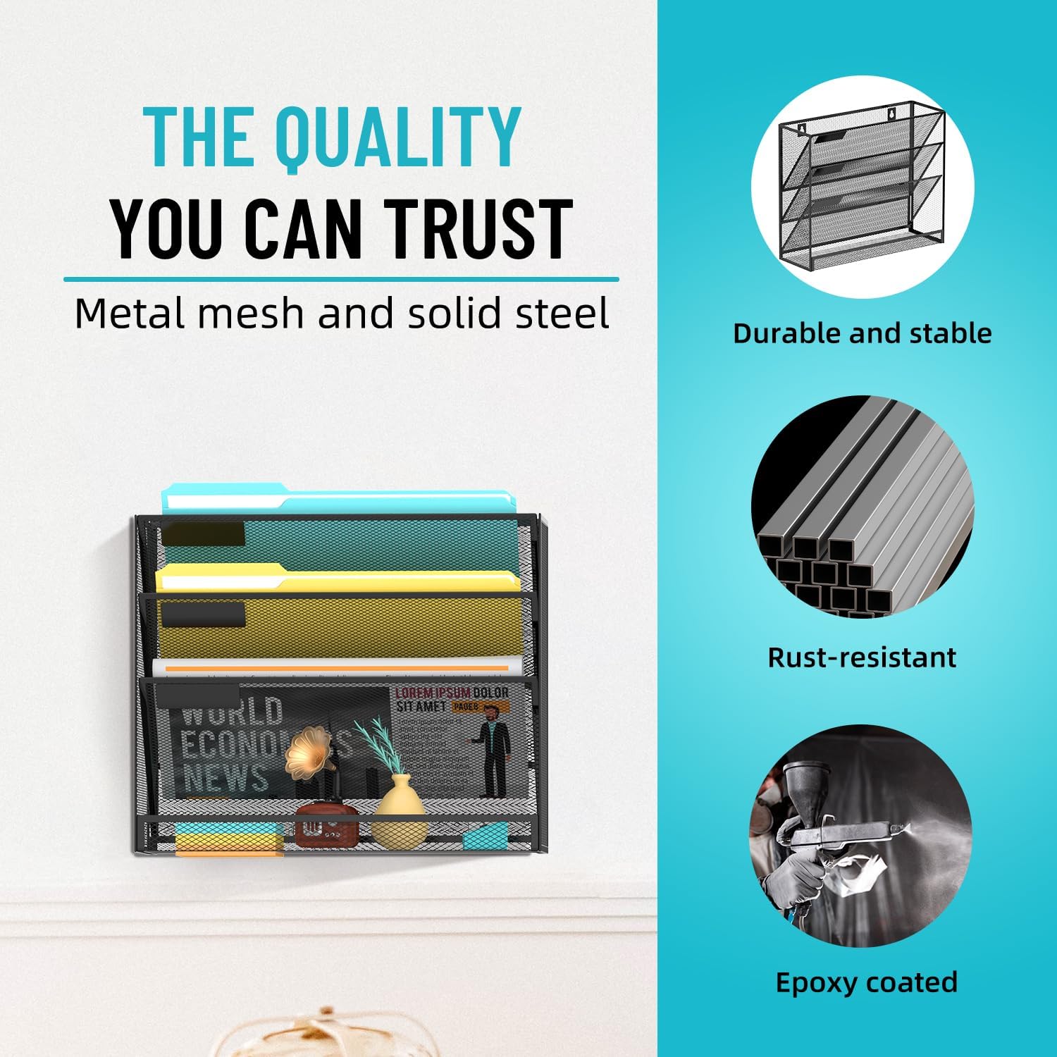 SUPEASY 4-Tier Wall File Organizer Mesh Office Mail Holder, Hanging Wall Organizer Magazine Rack for Office Black
