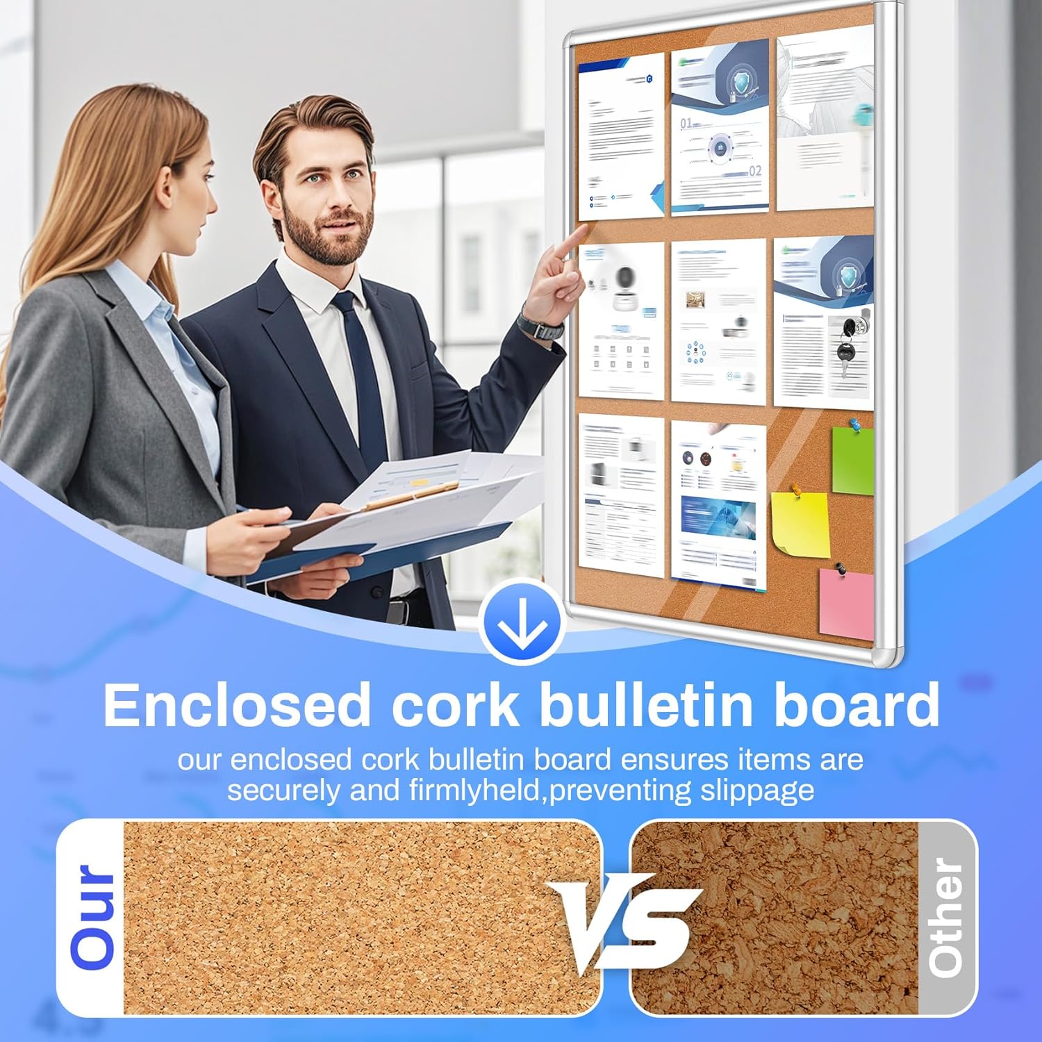 Magula 36"x24" Enclosed Cork Bulletin Board Tamper-Proof Dispaly Case, Aluminium Frame, Shatter Resistant Lockable Bulletin Board, Enclosed Cork Board for School, Office, Commercial, Hospital etc