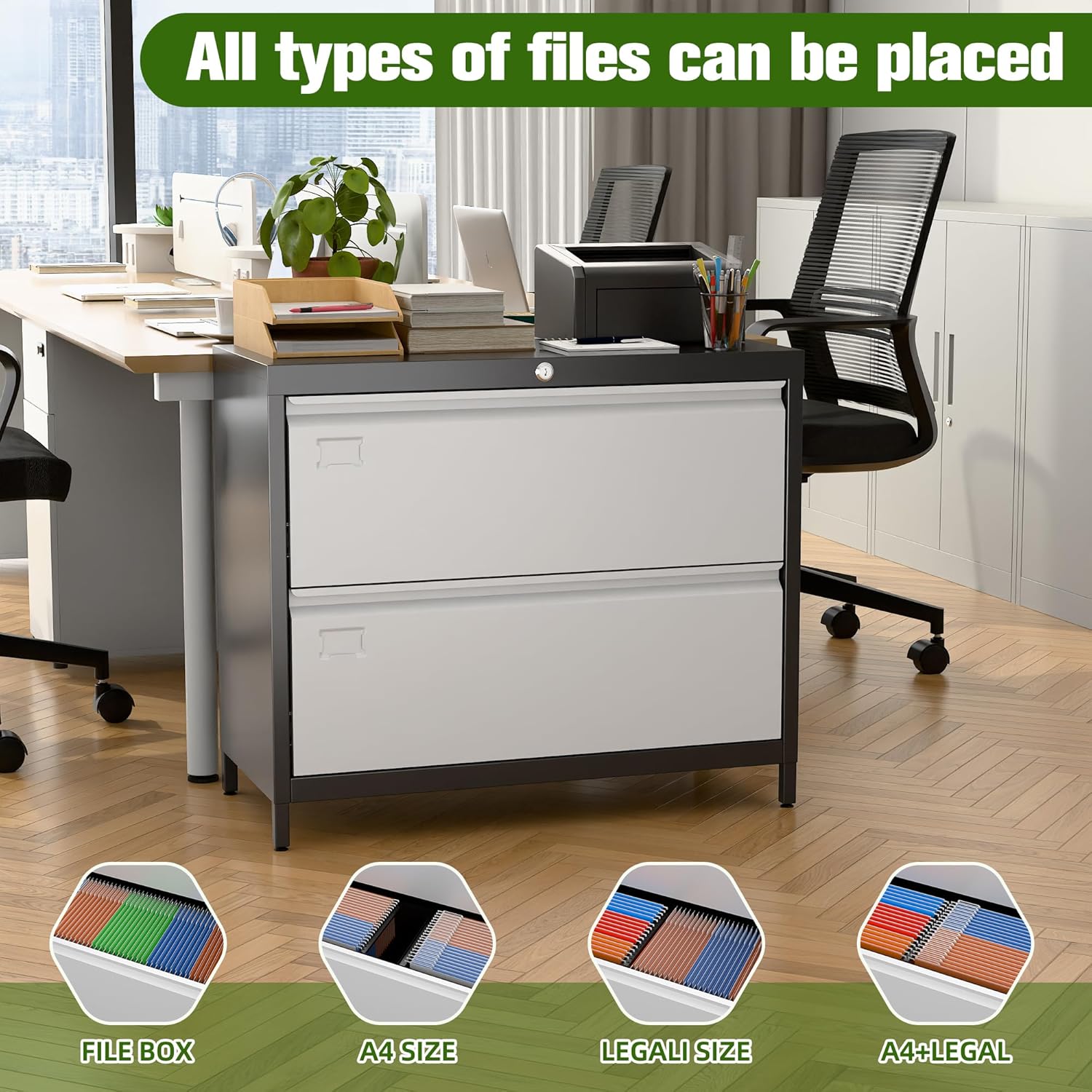- Durable Steel Construction & Scratch-Resistant Finishâ:Built with heavy-duty solid steel, this lateral file cabinet delivers reliable stability for home offices or professional workspaces. The smooth powder-coated surface resists scratches and fingerprints while allowing effortless cleaningâmaintaining a sleek, modern look for years.