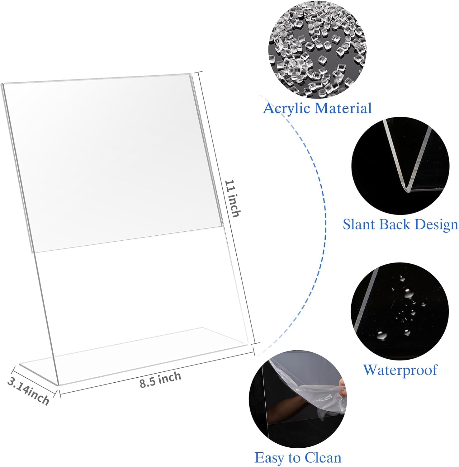 - Quality Assurance: This package contains twelve 8.5 x 11 acrylic sign holders. 12 months after-sale service. If there is any damage or other problems, please feel free to contact us, we will solve the problem for you and give you a satisfactory answer.