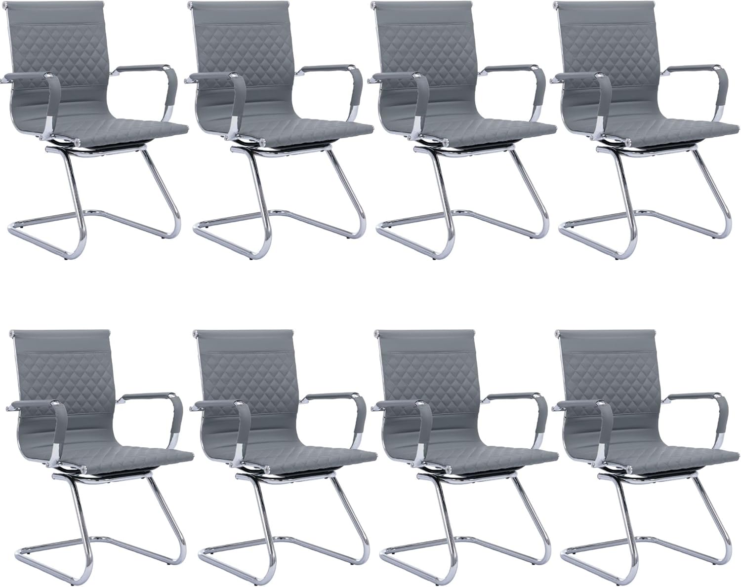 Office Guest Chairs - Set of 8 Mid Back, Modern PU Leather Desk Chairs for Reception & Conference Rooms, Grey
