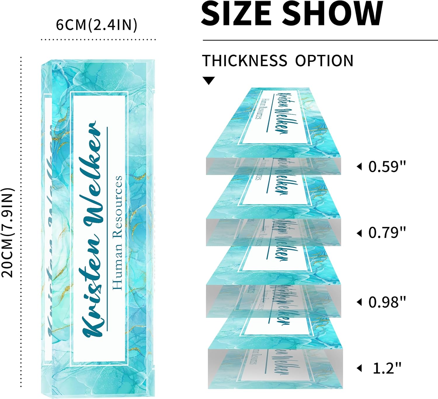 - 🎁Premium Quality: The personalized name sign plates are made of high quality crystal clear acrylic blocks. This office nameplate will stand out on any desk! We use high-tech uv printers to print on quality clear acrylics glass so you can visualise your memories.