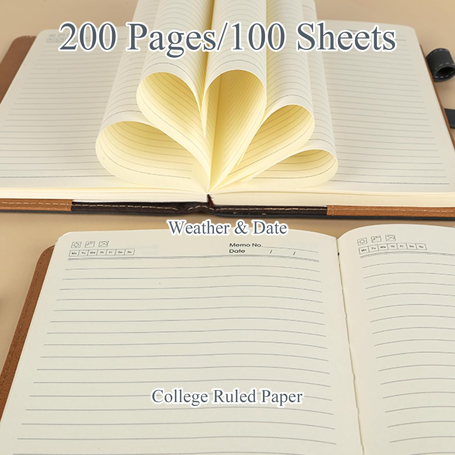 - 200 Pages Ink-proof Thick Paper Notebook: We use 100 GSM liend ruled paper avoids ink bleeding, ghosting and shading which is more than average paper. So you can write with most fountain pens, pencils and ball point pens. 200 pages diary notebook/100 sheets college ruled lined notebook papers, good for daily use. Perfect as journal for writing, travel notebook, business a5 notebook, teen journal, back to school gift.