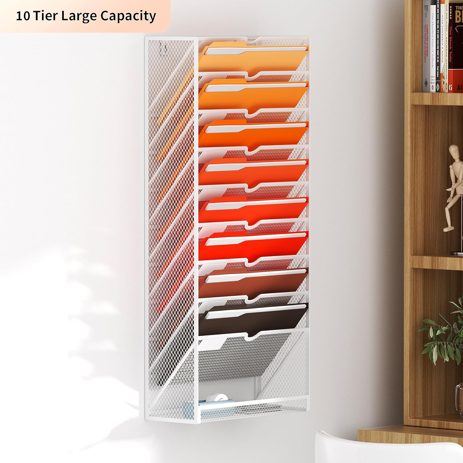 Marbrasse 10-Tier Hanging Wall File Organizer, Wall File Holder for Papers, Files Clipboard & Magazine Organizer, Wall Mount File Holder Great for Office Home (White)