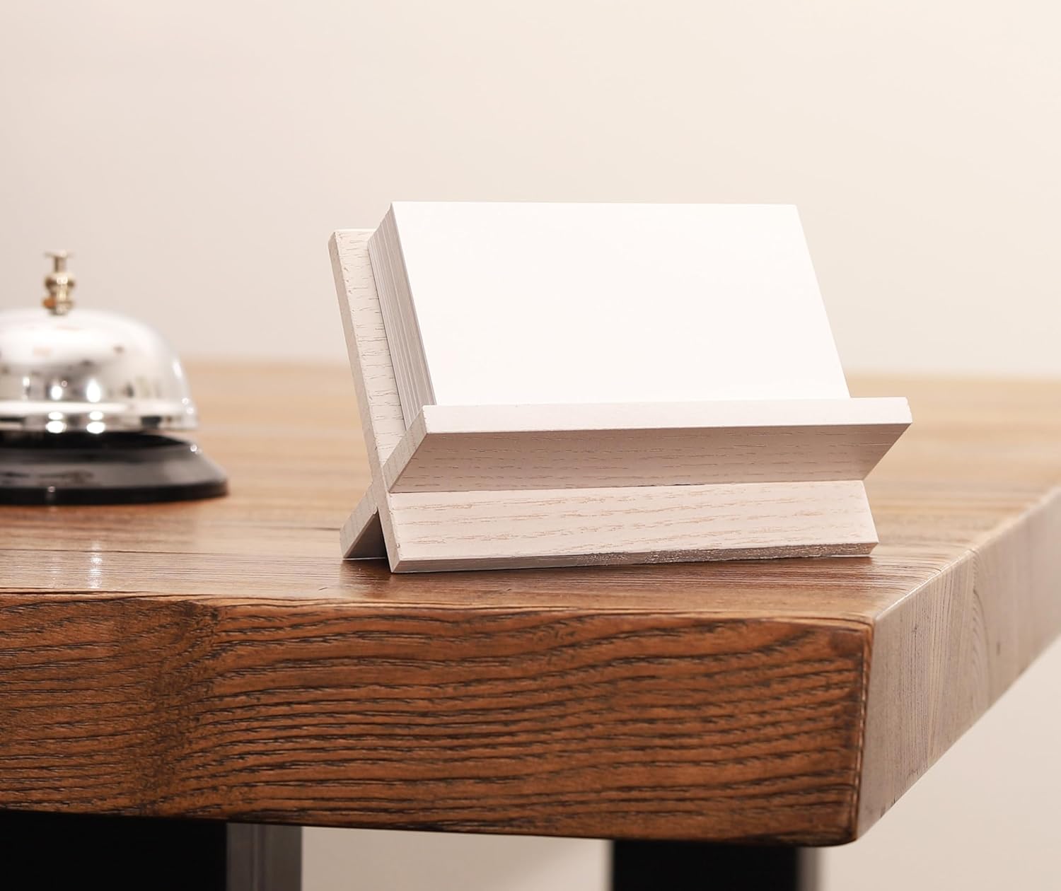 White Wood Business Card Holder Desk - Desktop Card Stand, Holders for Business Cards, Wooden Business Card Holder for Office Desk or Cafe, Bar & Restaurant Counter