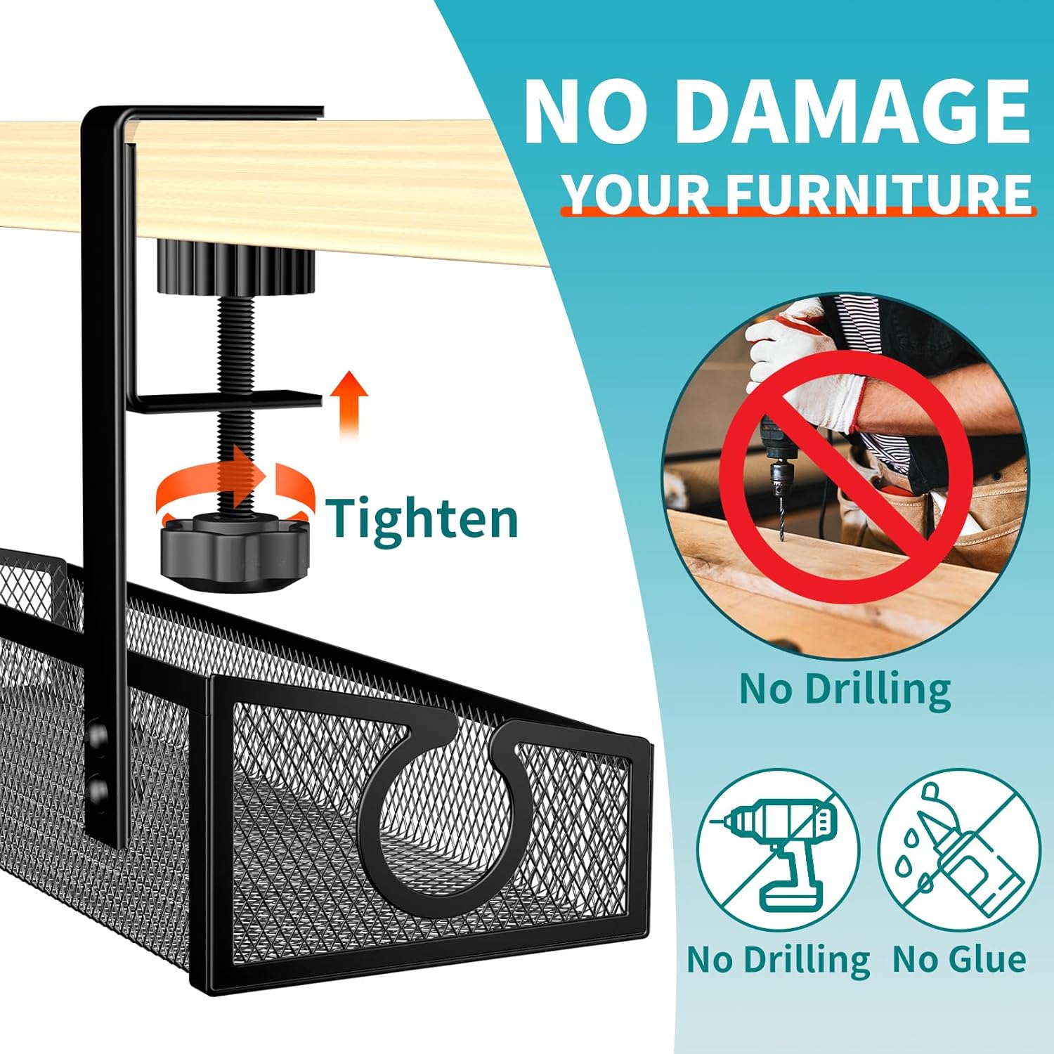 - ใ๐ฌ๐๐๐ ๐ฐ๐๐๐๐๐๐๐๐๐๐๐ & ๐ต๐ ๐ ๐๐๐๐๐๐๐ใNo drilling required. Kaiferty under desk cable management tray can be easily hung on your desk, allowing you to change its position to suit your needs. The clamp of this cord management tray features an EVA scratch-resistant pad to protect your desk from any marks or damage.