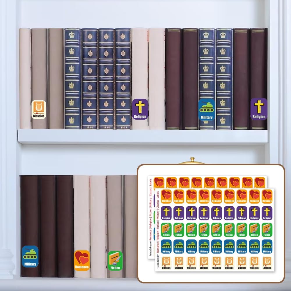 - Organize special collections or communicate information to library patrons with these classification labels.Come with 90pcs Fiction,90pcs Romance,90pcs Military,90pcs Religion,90pcs Classics