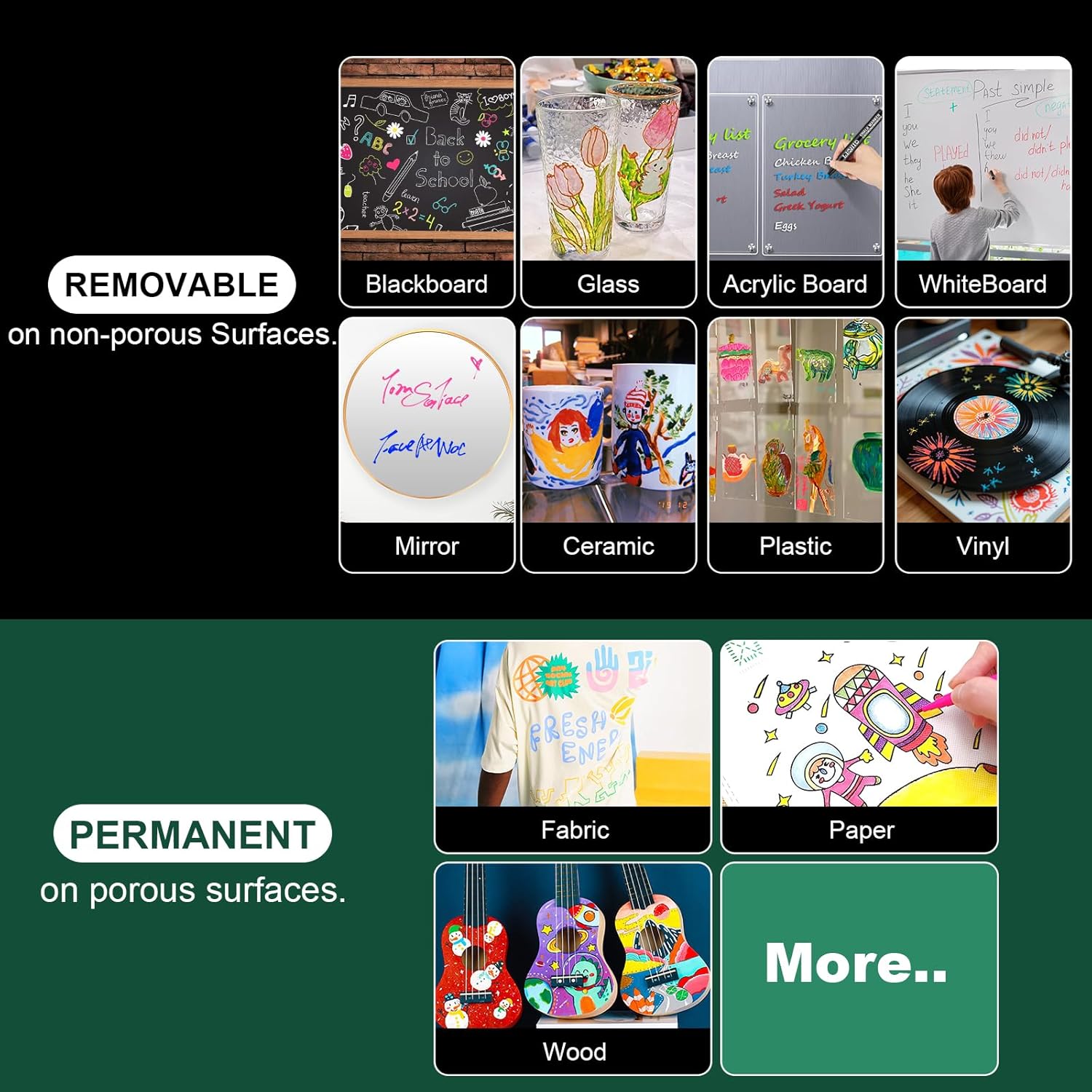 - Versatile. Best use and erasable on blackboards, chalkboard, dry erase board, glass, windows, plastic, ceramic and most non-porous surfaces.