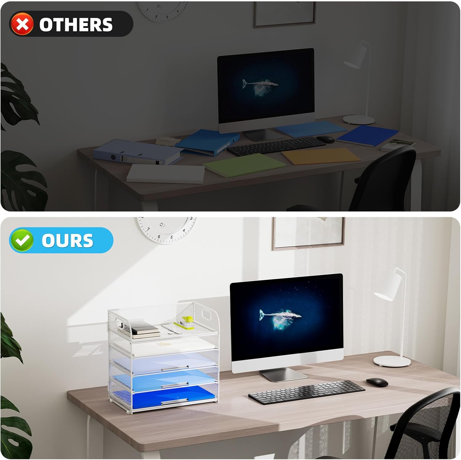 - 【MULTI-PURPOSE ORGANIZER】5-tier layered design and large capacity make the paper organizer become an ideal choice for managing all kinds of letter-size letters, paper, books, bills, etc. Let you quickly identify the contents of each compartment super easy!