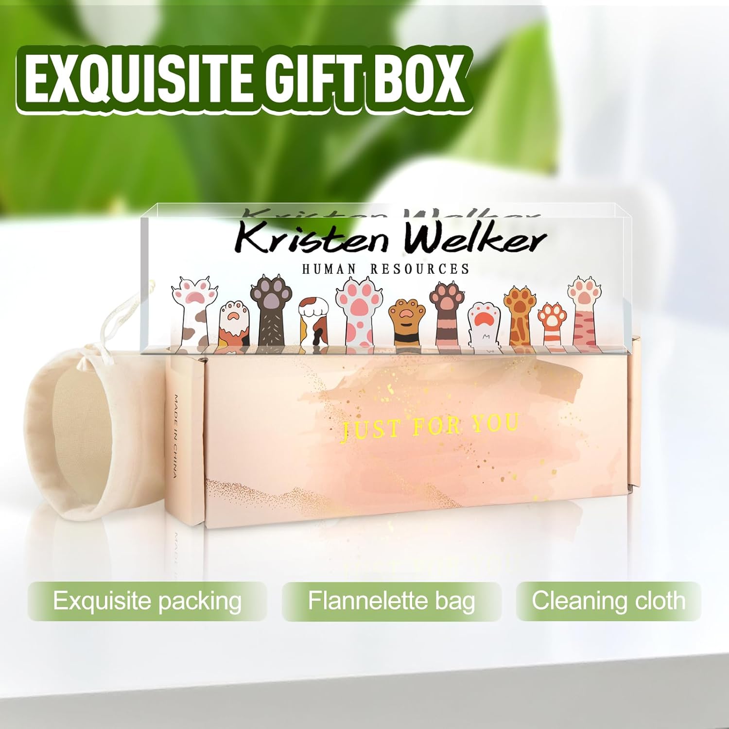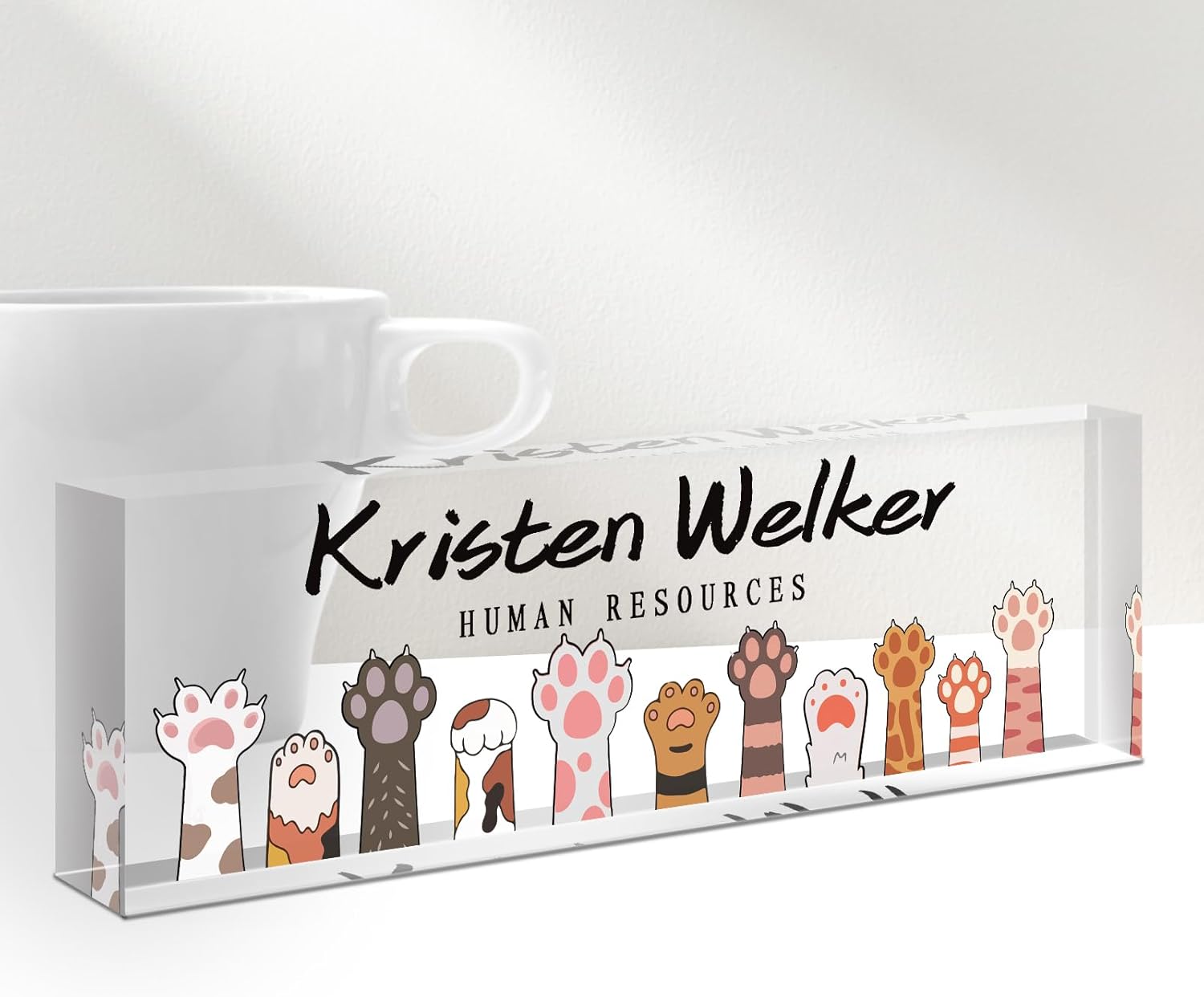 - 🎁HIGH QUALITY - The Personalized Name Sign Plates Are Made Of High-Quality Crystal Clear Acrylic Blocks. This Office Nameplate Will Stand Out On Any Desk! We use high-tech UV printers to print on quality clear acrylic glass so you can visualize your memories.