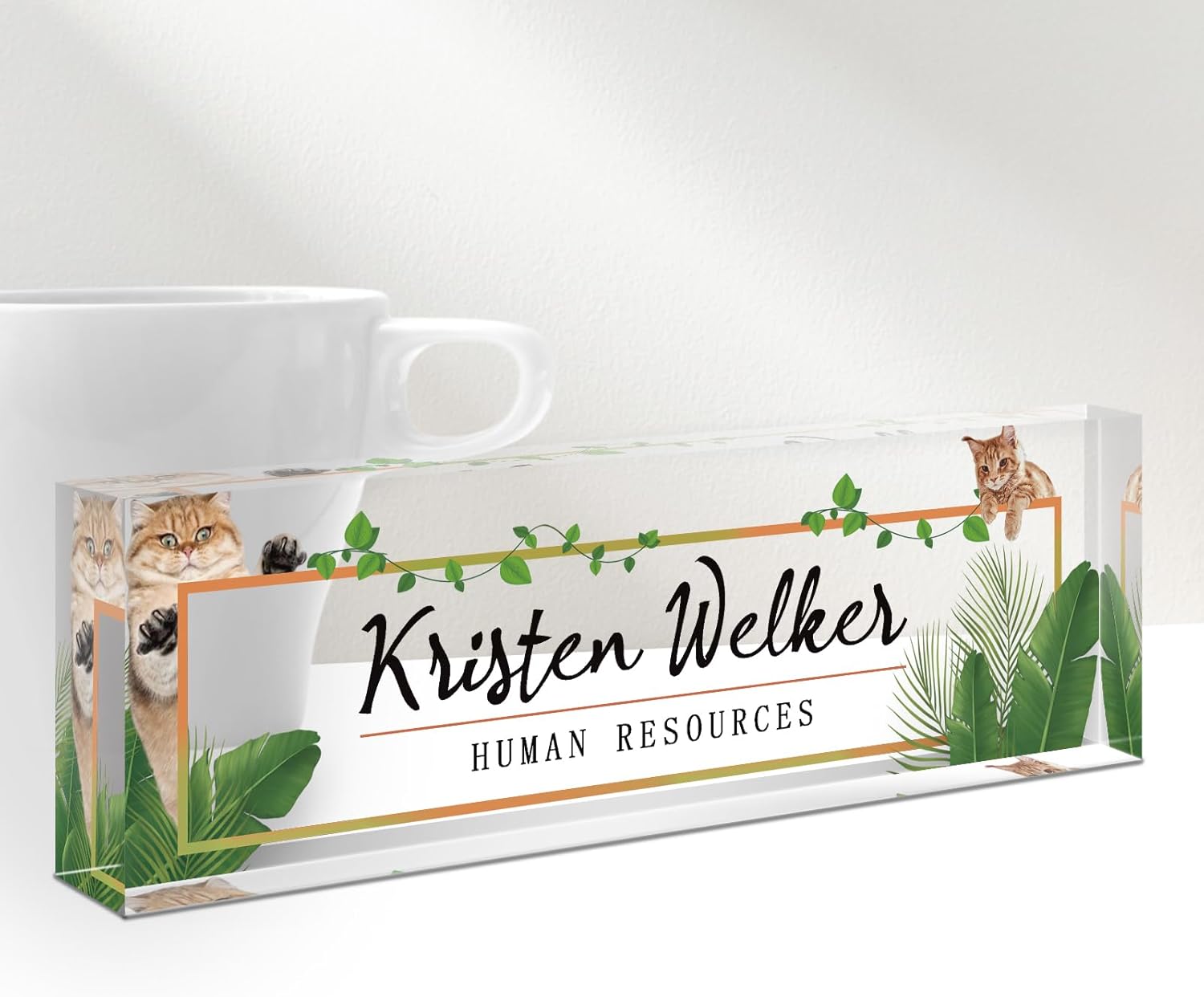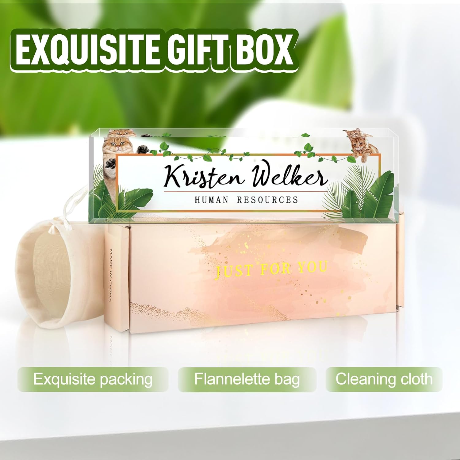 Gowellly Office Desk Name Plate Personalized - Custom Acrylic Name Plates for Desk - Employee Appreciation Gifts - Office Gifts for Teacher,Boss,Nurse,Lawyer,Women Office (Pet-cat-1)